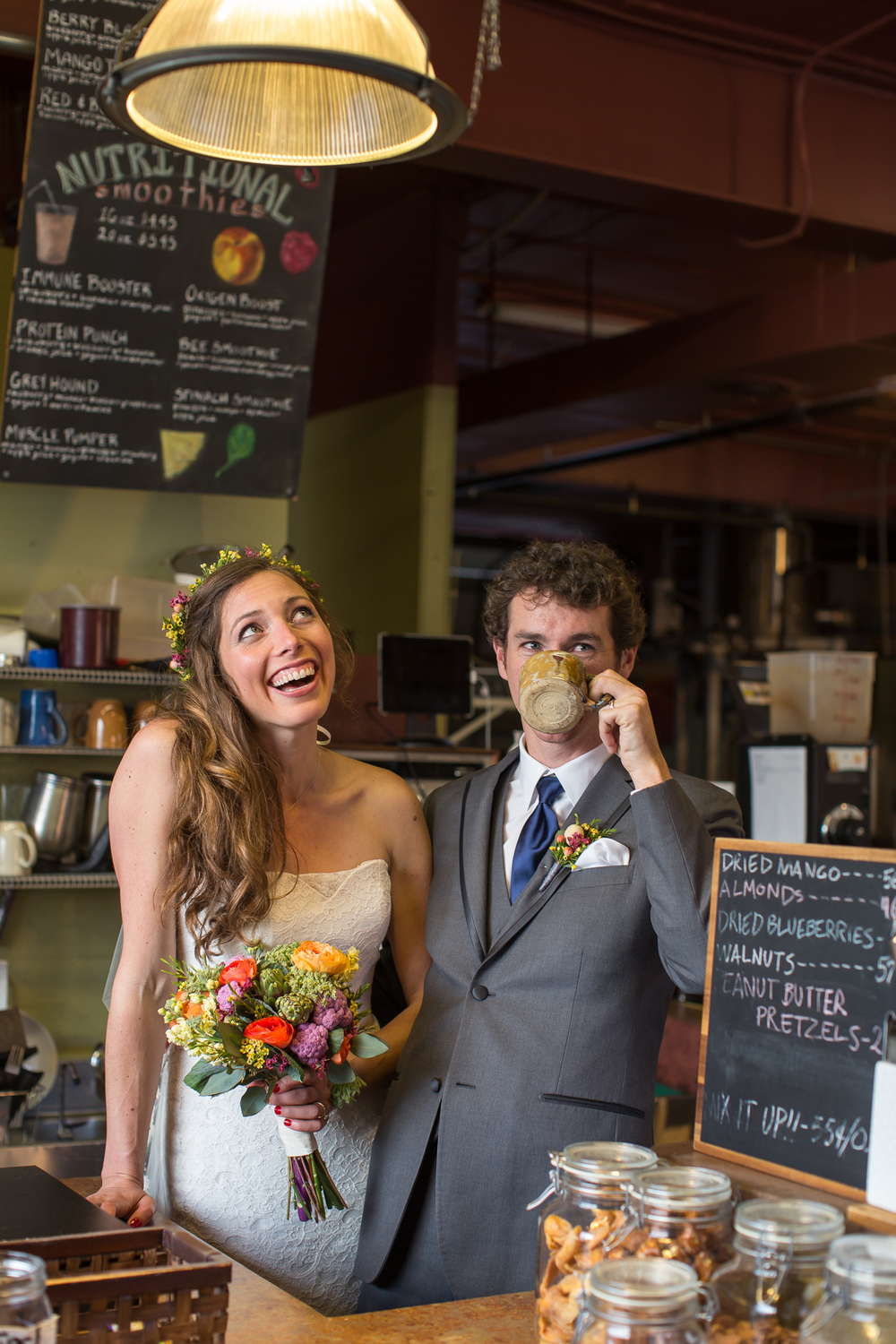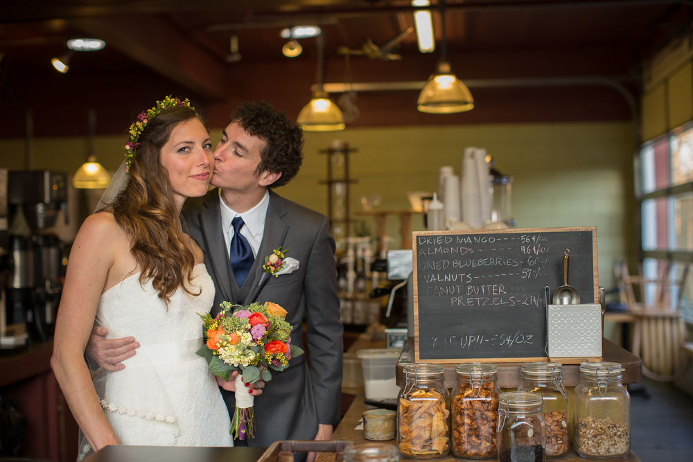 It was convenient to get married in the spot where we met. We knew so many people from the coffee shop (I’d worked there) and had so many people who love and care about us there. Having this little community not only made it convenient though, it was also symbolic for us. Coffee shops are full of people from different walks of life building relationships, and we wanted our marriage to reflect the same open and welcoming space relationally speaking.