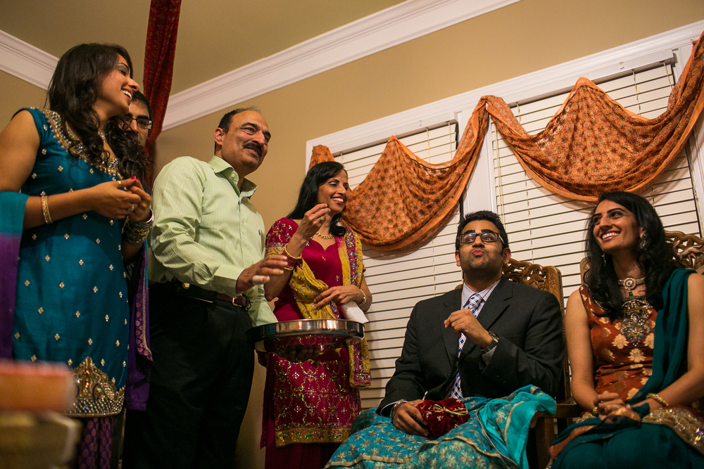 One of my favorite aspects of being a wedding photographer is witnessing how people across the world celebrate important events. Puja and Rajpaul’s Indian engagement ceremony in Chapel Hill was a lively at-home celebration, and I enjoyed every minute of it!