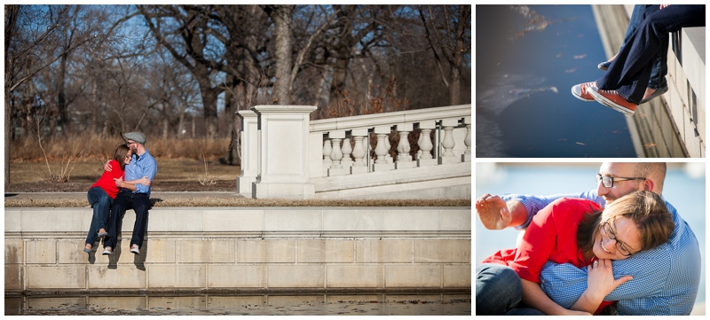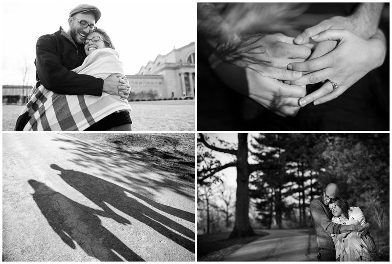 Despite the nearly sub-zero weather, we all had a lot of fun shooting at Forest Park St. Louis. (For you North Carolina readers who are unfamiliar with the Midwest: Forest Park is St. Louis’s biggest park and home to some amazing attractions that I frequented in my childhood- the Saint Louis Zoo and the Saint Louis Art Museum topping my list. Surprisingly, it is larger than Central Park in Manhattan!) We spent most of our time on Art Hill and also shot some fun photos on the wooded running trail along Skinker Road (which is where Katy and Tim had their first kiss!)