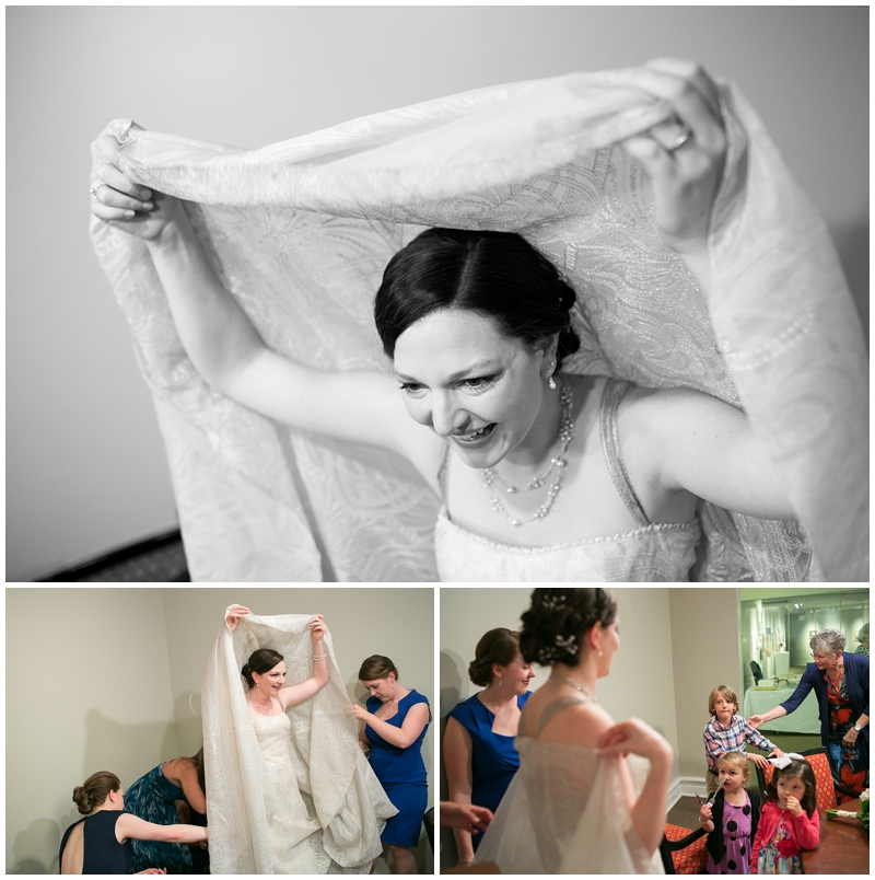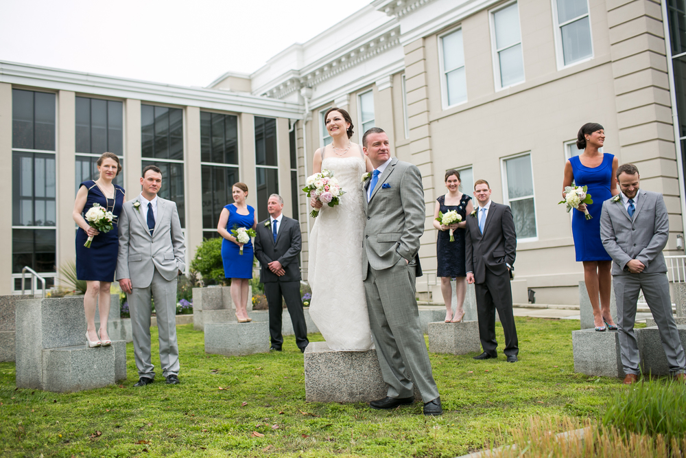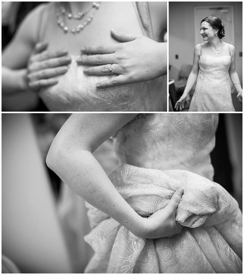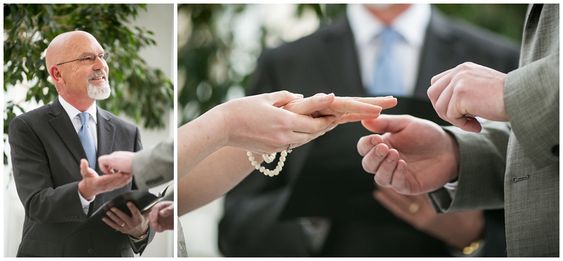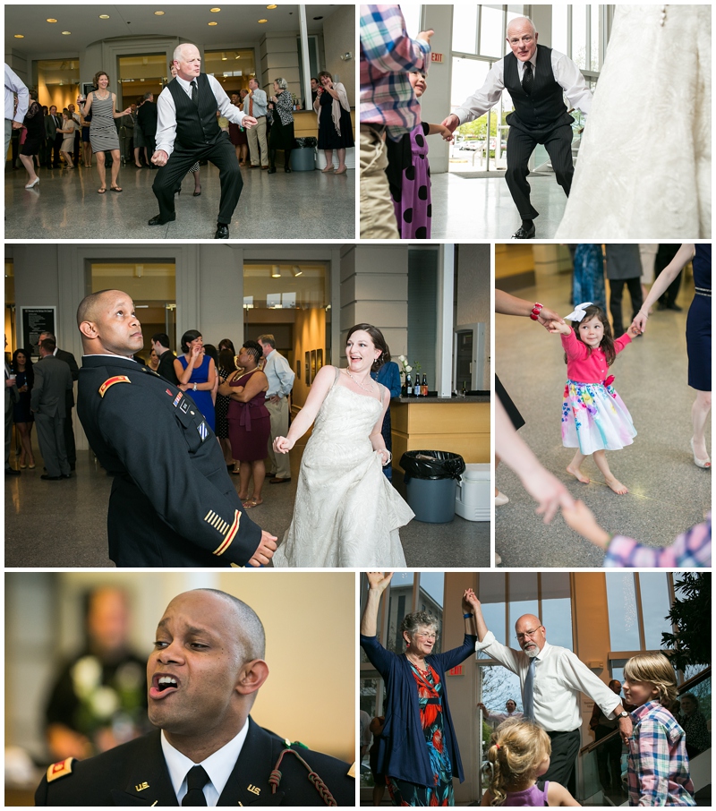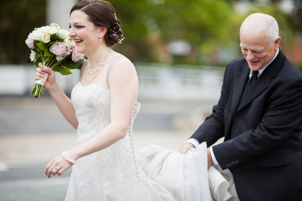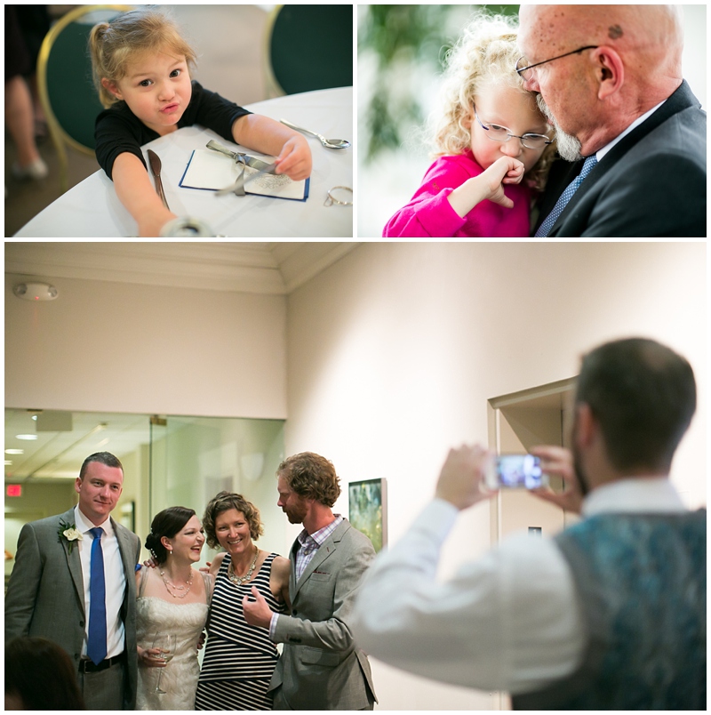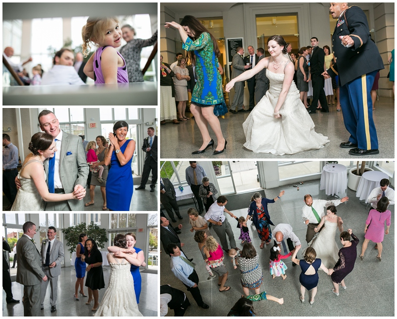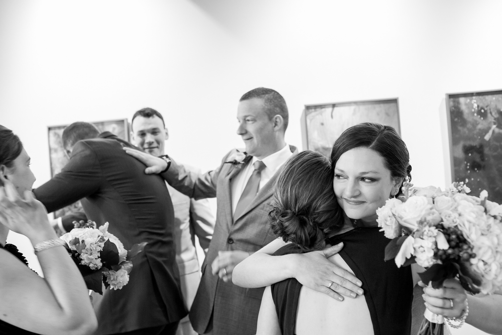 Katy and Pat tied the knot in downtown Durham on April 19, 2014 at the Durham Arts Council. This venue is one of my favorites, and not just because it’s three miles from my house. The massive windows encasing the first floor atrium makes for soft, beautiful light- especially on a cloudy day. The stairs leading up to the second floor make for the perfect spot to capture a bird’s-eye view of the scene, and the twinkle lights hanging from the ceiling create a romantic ambience that calls for minimal decorations.