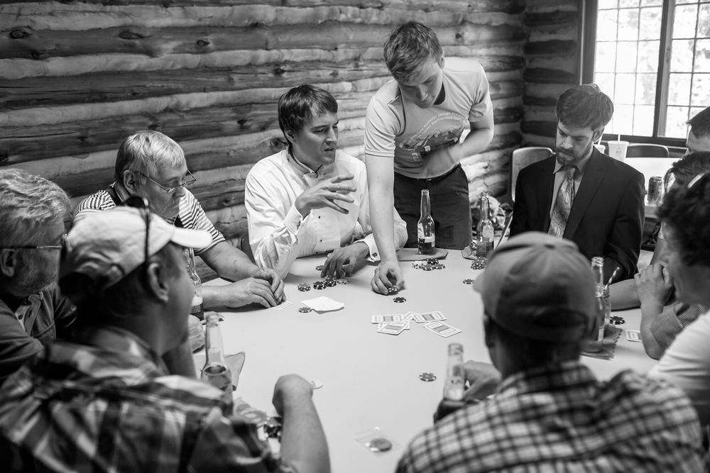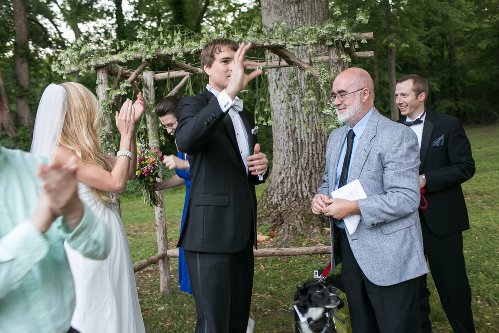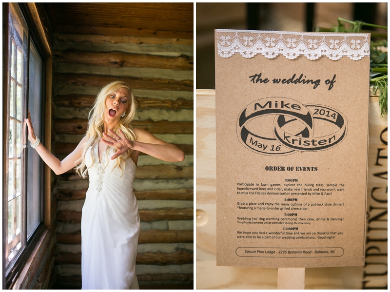 Having done photography in my undergraduate degree, I knew how awesome the lighting would be if we did it at “golden hour”, so I made the ceremony (and consequently the invitations) with that time. I wanted the ceremony pictures to be in the best lighting out of all, especially because we were planning on having the ceremony outside. Then, I realized, looking at the rest of the time we had we’d be rushed for dinner and dancing – my two favorite parts! So we ended up deciding that since we were doing a potluck anyway and had limited ways of keeping food warm, we’d just have dinner before the ceremony. It was awesome, we had plenty of time for poker, lawn games, dinner, the ceremony, and just celebrating and dancing after! And we still managed to be out of the venue and to the bonfire at midnight!