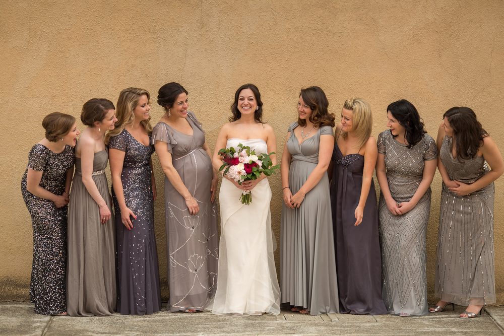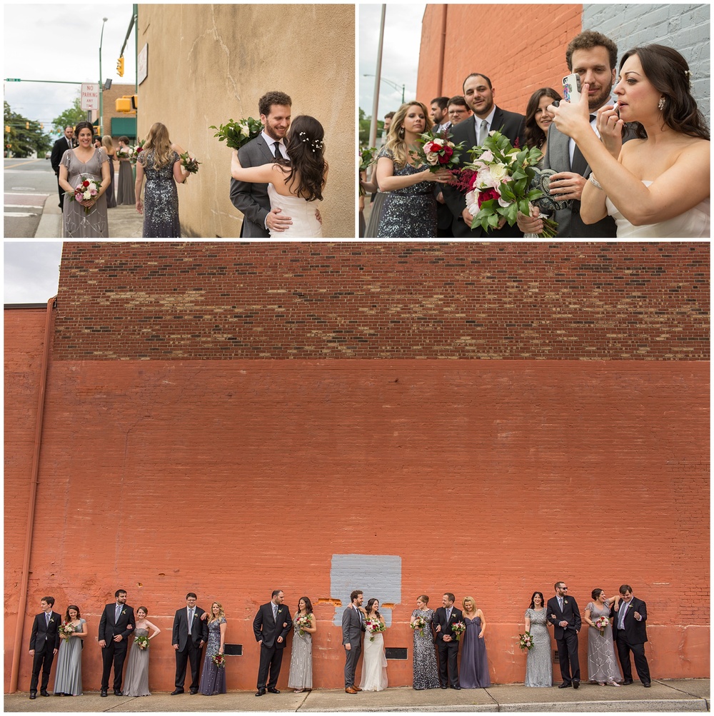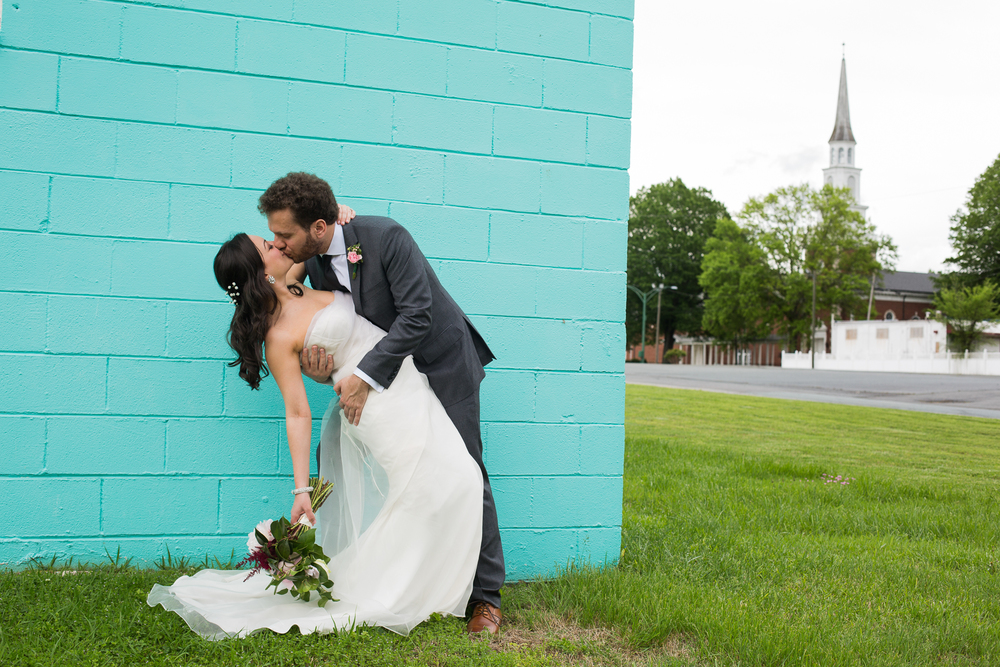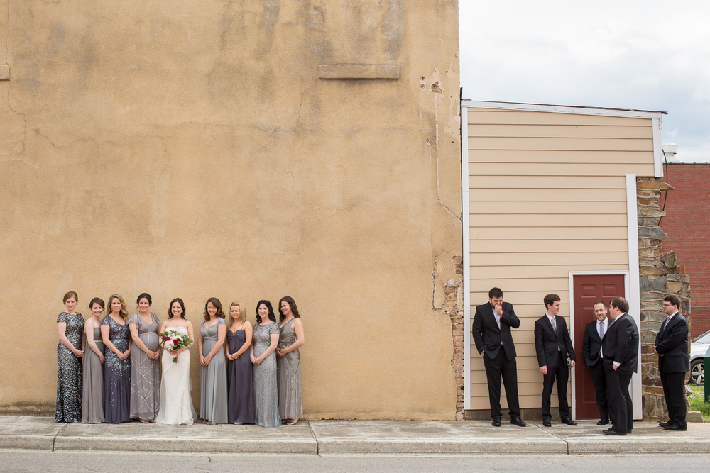 We wanted to get most of the photos out of the way before the ceremony, but knew we had some group family photos to take care of during cocktail hour. Courtney was very helpful wrangling family members who’d gone rogue to make the process go as quickly as possible. We also hadn’t given too much thought to where we wanted to do our photos in and around the venue. We weren’t familiar with the area, but Courtney did a great job scouting locations in town and finding unique settings for our wedding party photos.
