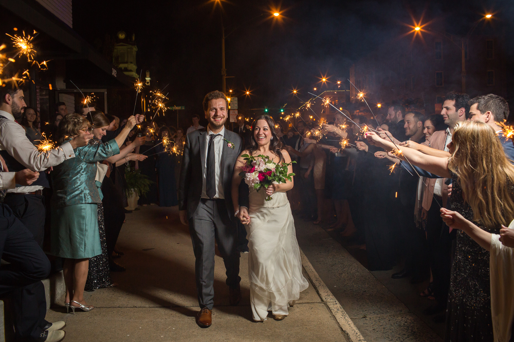 We wanted the wedding to be true to us and it was. From the rabbi’s fun and engaging ceremony to the venue and food, it all came together perfectly. We have a pretty clear sense of what our style is and chose vendors who matched that style. As a bonus, they were all extremely pleasant to work with! We ended up with a wedding that was in North Carolina, with a Southern-inspired menu, with Brooklyn loft vibes. Jared is a graphic designer, which meant the wedding was very branded! We included personal touches like setting up a trivia game for the guests taking the buses from the hotel, personalized matchbooks with illustrations of us, a Jared-curated menu, and more. We chose vendors who had a similar sense of our style, so we knew they would create a beautiful event—and they did.