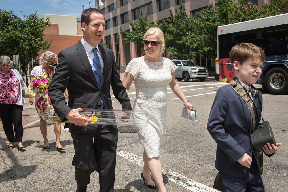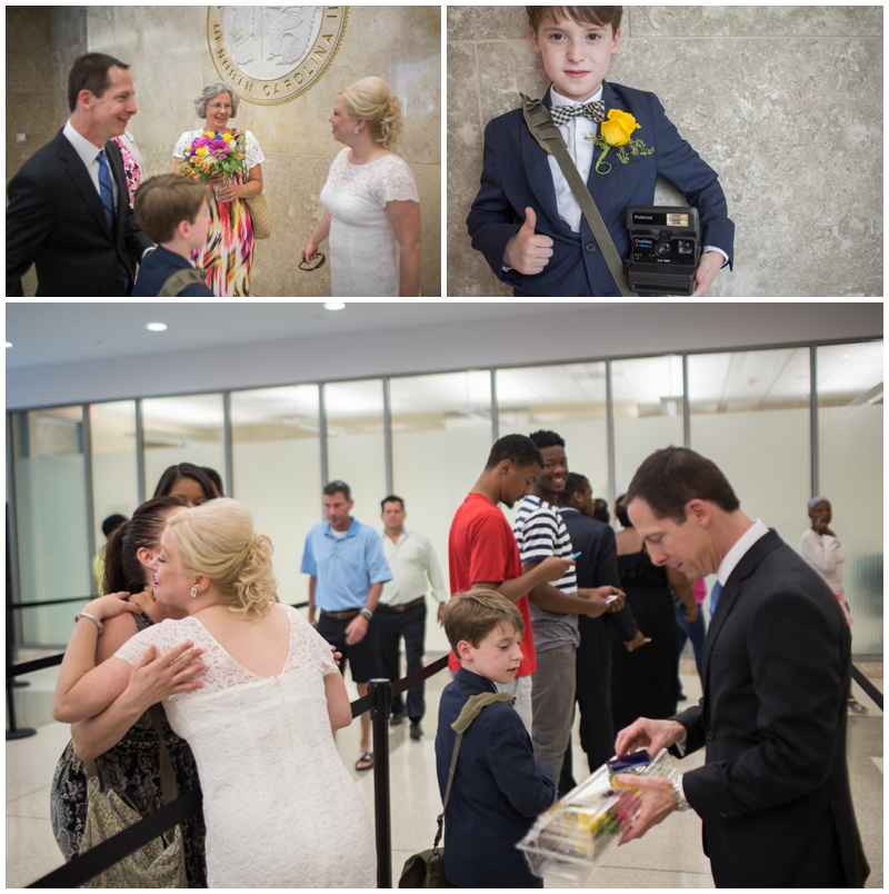 Conan: All of the above and… Having family fly in from Texas. Having my son try his hand at photography, which gave us a particular photo that we will cherish forever. “Owning” the 4th floor of the courthouse as seemingly the only wedding in all of Raleigh that day. Driving around in a car with “Almost Just Married” and then with a quick wipe “Just Married” on the back. Feeding cake to my lovely new wife and holding her hand while listening to some funny and touching speeches from friends and family.