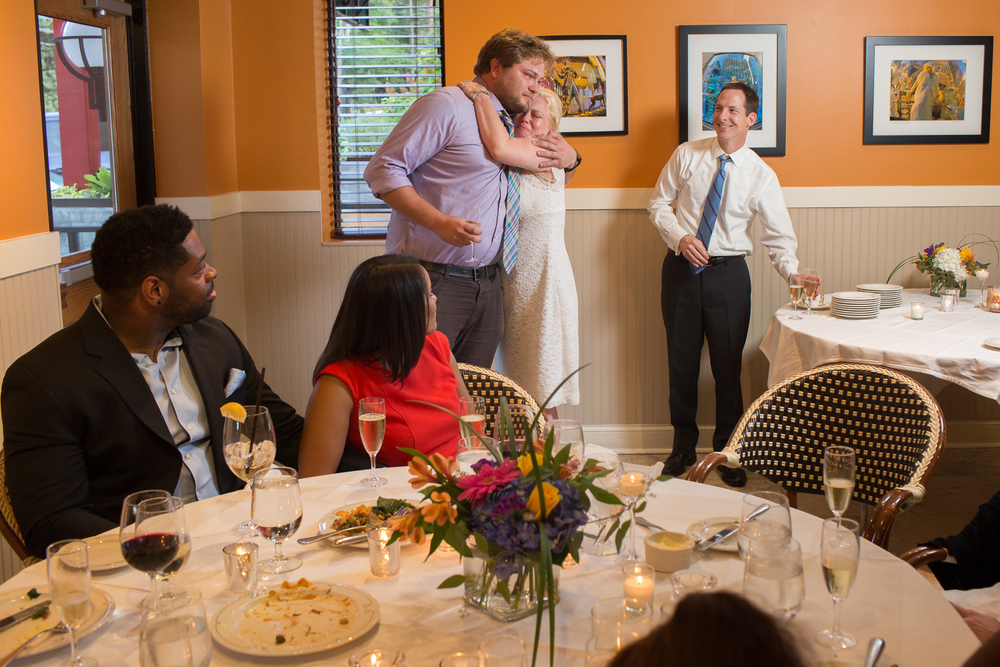 We wanted something intimate and romantic, but without all the bells, whistles, trims, and trappings of a traditional wedding. We wanted to get married at the Courthouse, but not without our family and friends there. We wanted a reception that was more like a big dinner party than about garters and bouquet tosses. Simple, yet super fun.