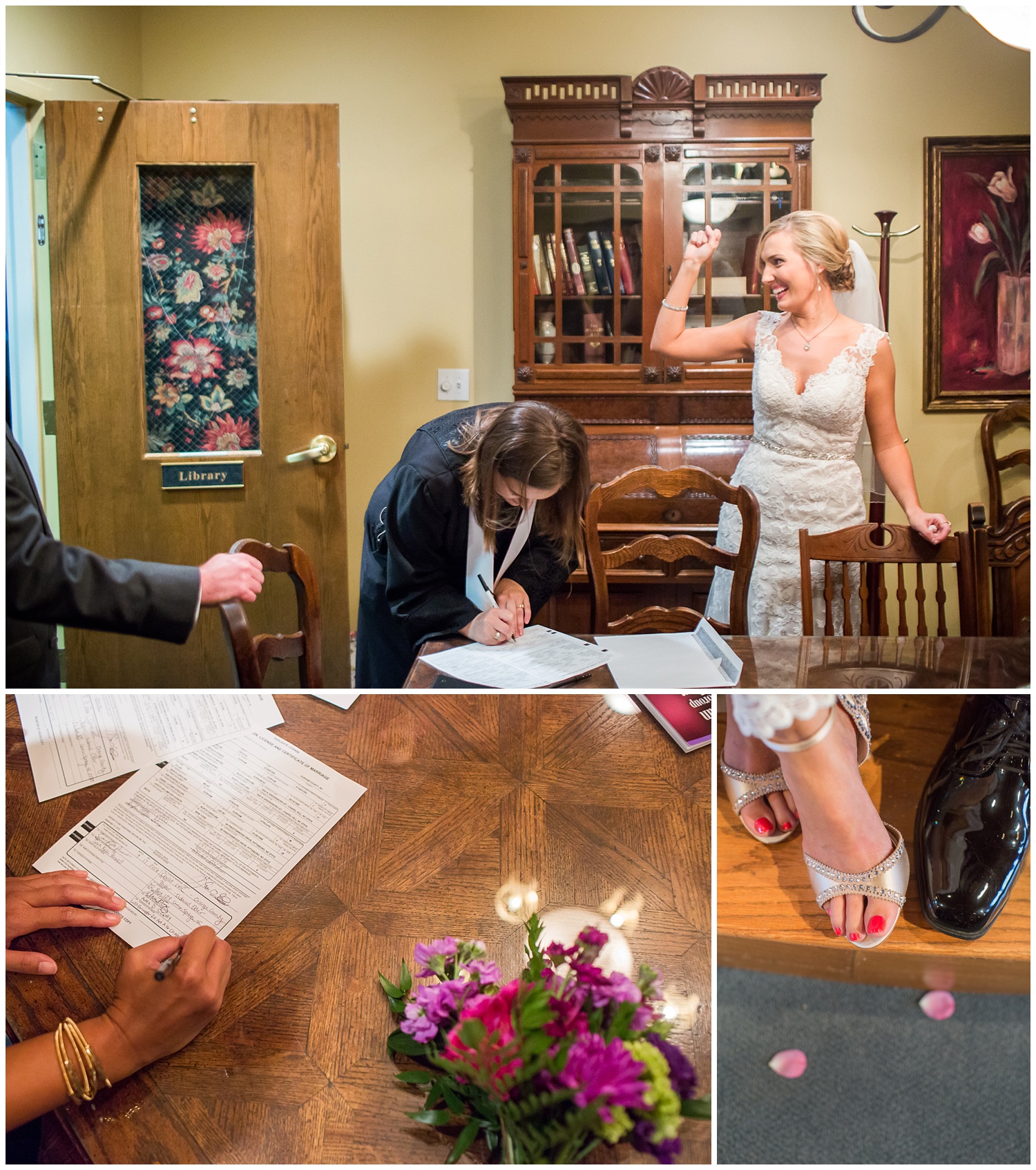 Amelia: Oh man, lots of little things. I unexpectedly wore a pair of diamond earrings borrowed from my cousin and maid of honor, which had diamonds from my late grandmothers wedding ring. That was a very special last minute decision. The best man and maid of honor speeches were INCREDIBLE.