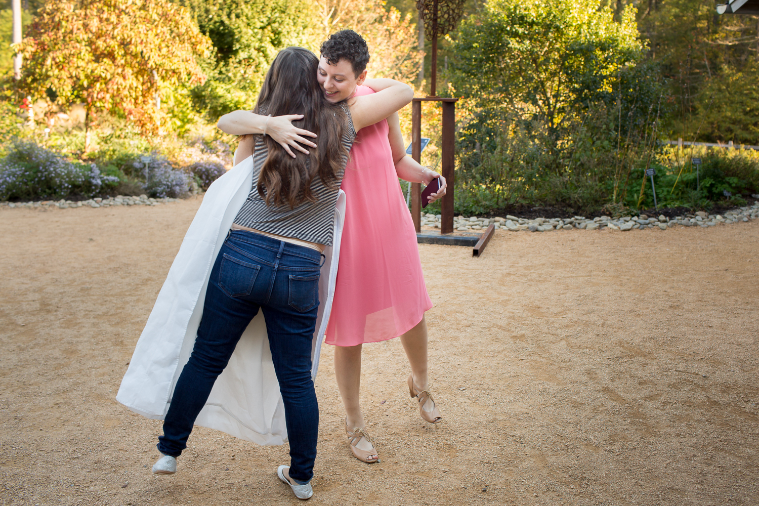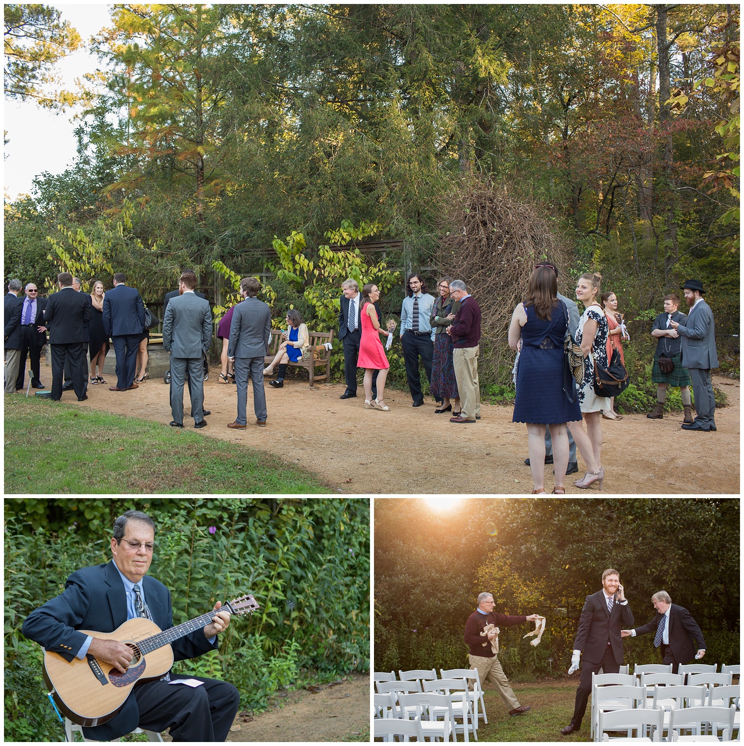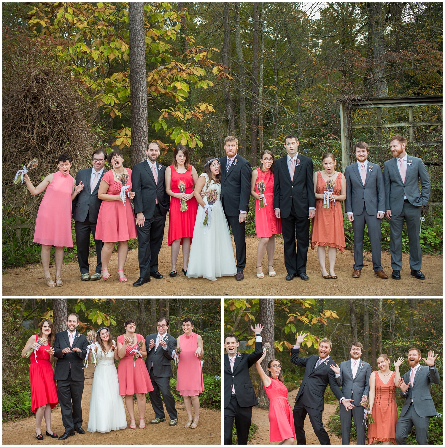 This chill couple wanted a simple party with a laid-back feel, and they incorporated some unique elements I haven’t seen before in my eight years as a wedding photographer–(dinosaurs in the table settings, kitten cake-toppers, not to mention an unforgettable throw-down to Alanis Morissette’s “Uninvited” on the dance floor). And the NC Botanical Garden venue was the perfect colorful fall backdrop for their unconventional day!