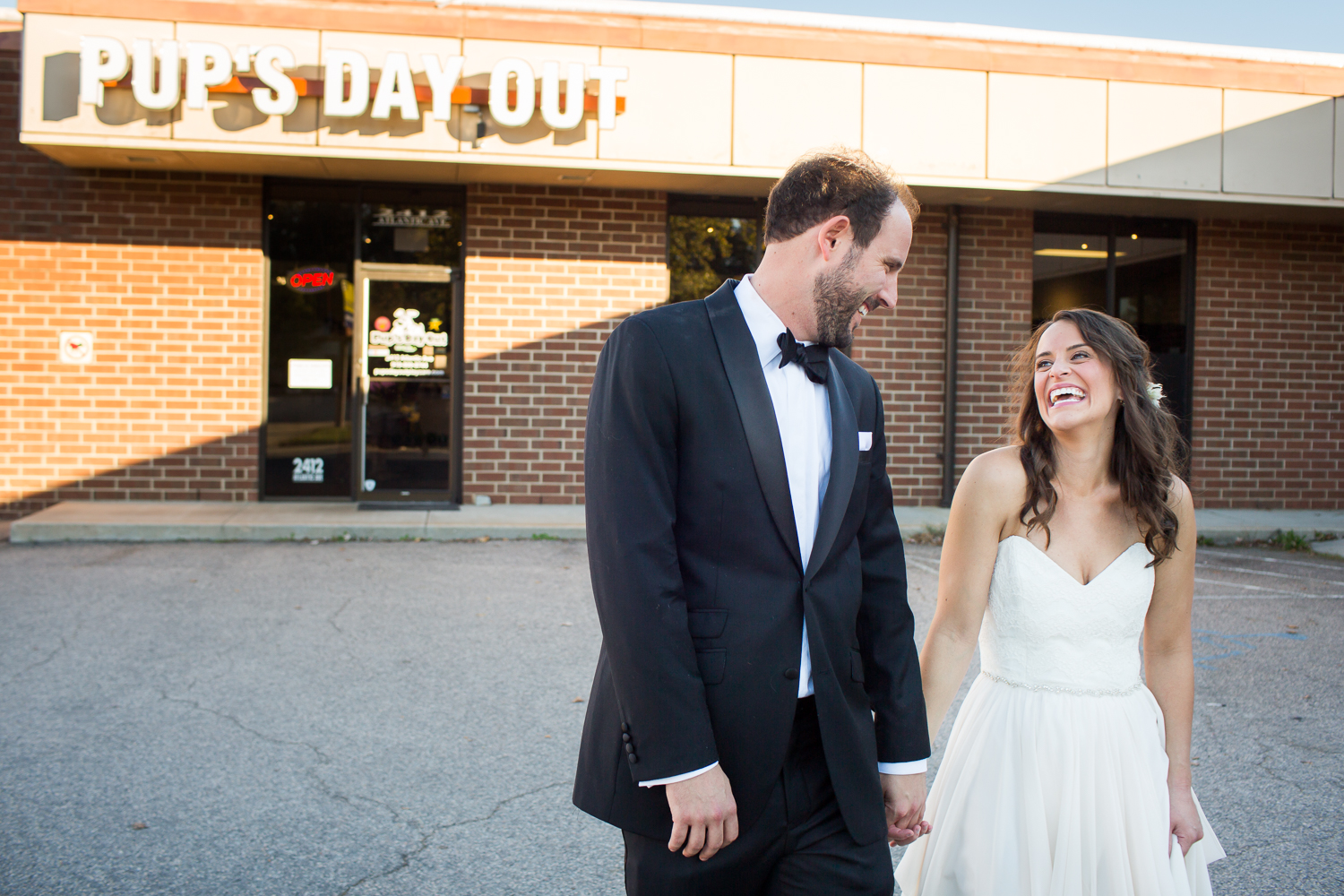 Often wedding days are packed with one event after another, but Tim and Teague wanted to have ample time for portraits. So we spent a glorious stretch of time wandering from one cool spot to another during “golden hour,” spanning City MarketHistoric Oakwood Cemetery, and even Pup’s Day Out to visit their fur-babies.