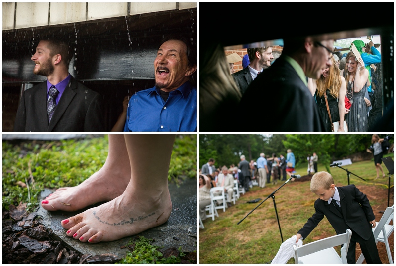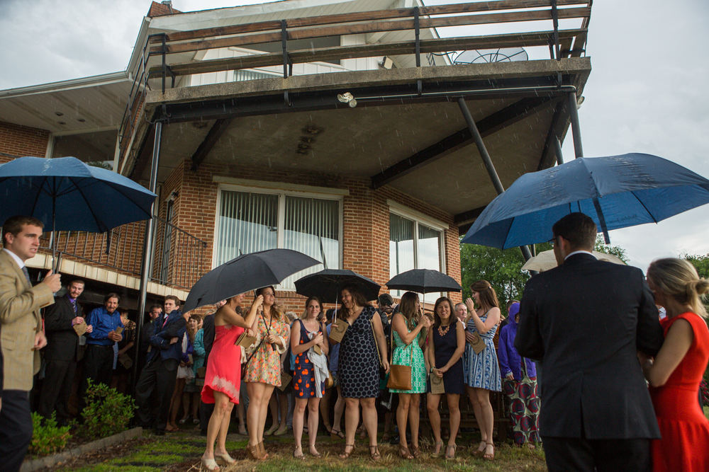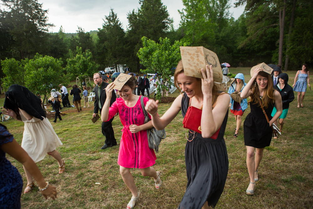 Guests made makeshift umbrellas out of ceremony programs and made a beeline towards the overhang of the main house.
