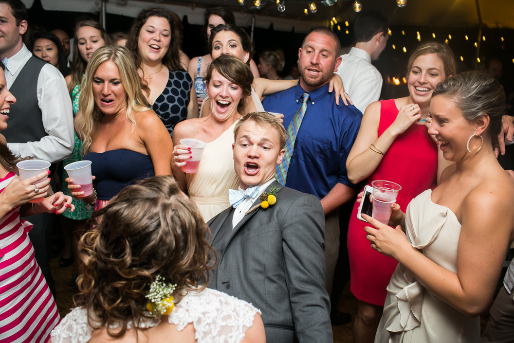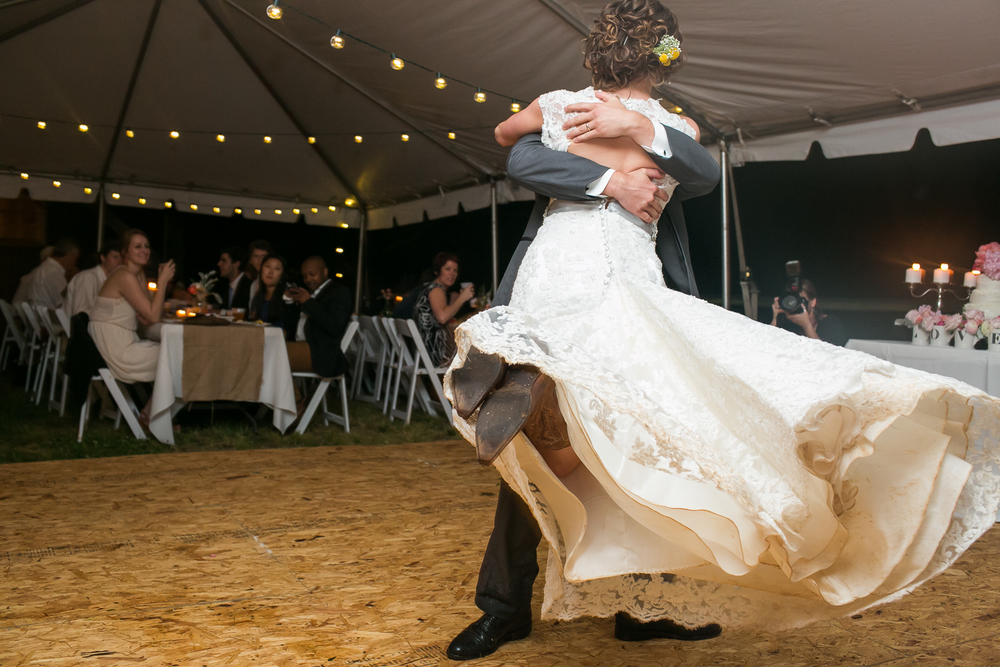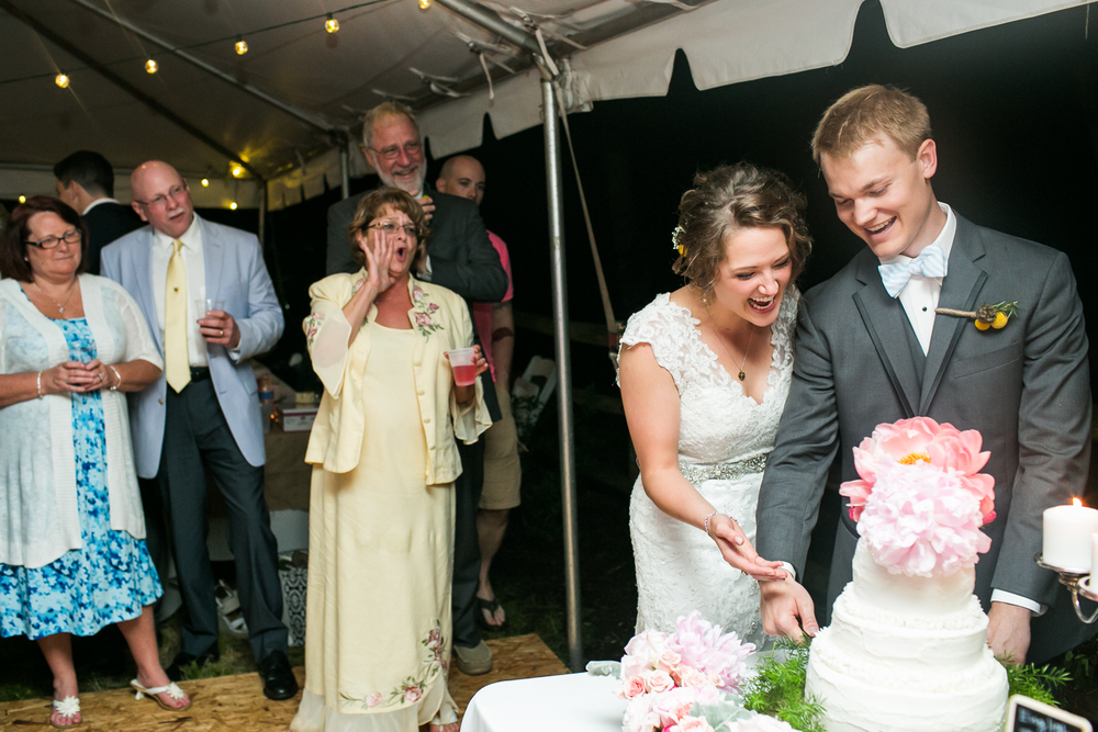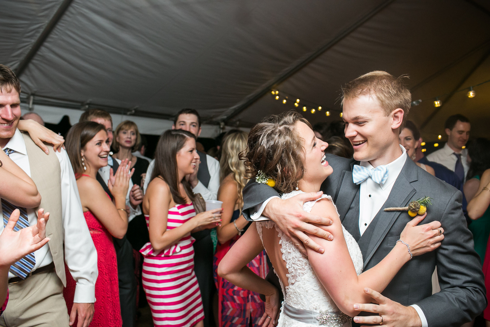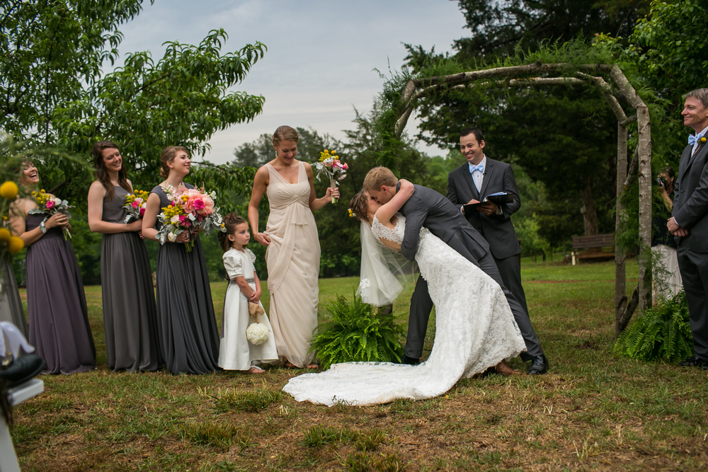 This wedding will be forever etched in my memory as one of the most adventure-filled ones this spring: the combination of the quaint country setting and sudden summer rainstorm made for truly unforgettable backyard wedding photography.