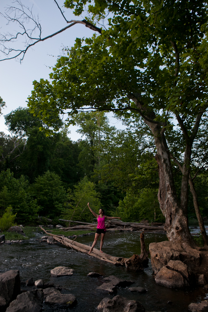 Meet Jess, my former lyrical/contemporary dance instructor!  She has danced since she was little and continued to dance with a company during her college years.  I was always impressed by Jess’ strength, perfect leaps, and solid center in class.  It was so fun to have her dance for the camera!  We trekked through West Point on the Eno in Durham, and she even balanced on a log in the river for me.
