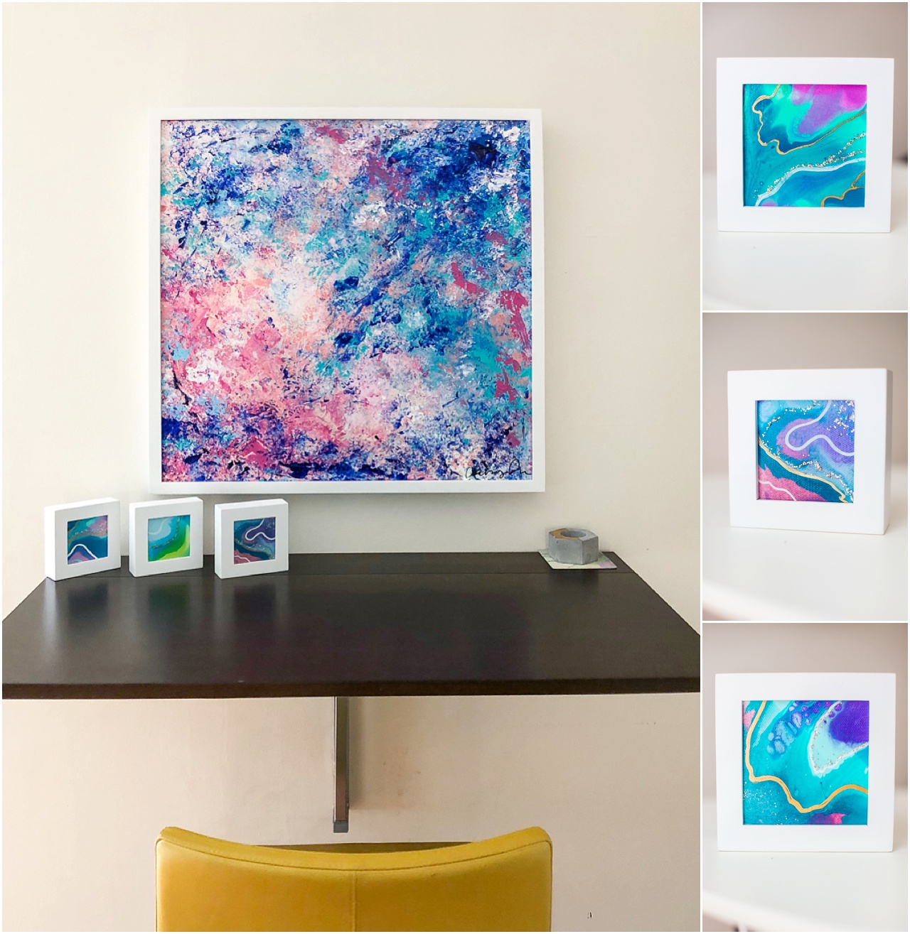 My husband’s favorites is “You Are Enough” – and I love the placement right above one of our standing desks, which happens to be my favorite place to work. I’ve heard lots of fans of the use of mica in the paintings! (Who doesn’t love glitter, right?!)