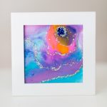 Small framed green and pink fluid painting by Durham artist Courtney Potter at Horse and Buggy Press and Friends gallery in Durham NC