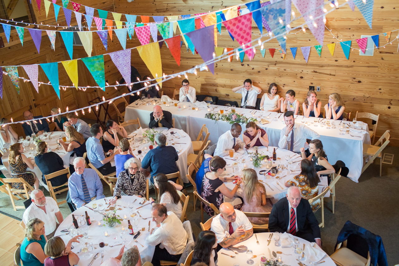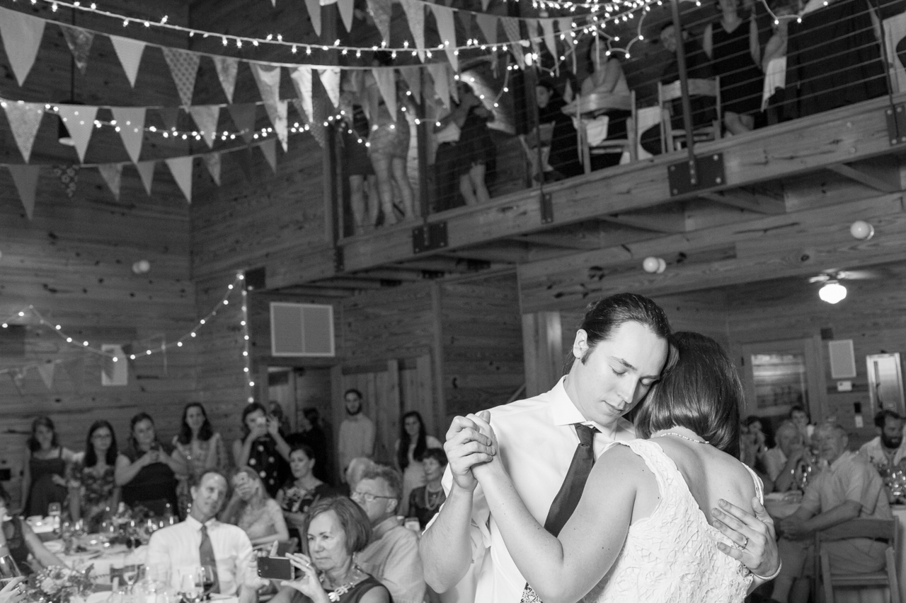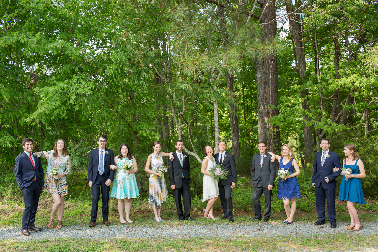 We wanted the ceremony and reception to reflect our values and vision for what we want the world to look like: a just, equitable, welcoming and joyful place where community is strong and everyone can be fully present and fully themselves—with fabulous music, let-loose dancing, and delicious food and drinks of course! We know that having a wedding and a state-recognized marriage is a privilege, and one that couples like us have had longer than others, and it was important for us to acknowledge that, even if in a small way with some text on the bulletin. The ceremony used gender-neutral language, and we didn’t gender our wedding party or their clothes—Will had a posse, I had a posse, and they wore clothes from the same color palette. We spent a lot of time picking out the readings and music for the ceremony and determining how our friends and family would be involved in ways they’d enjoy. We both grew up in the Presbyterian church and it was important in shaping our values and sense of community, so it was special to have the ceremony in the church in which Allison was raised. We’re also both from NC. The Haw River Ballroom reflected both different parts of North Carolina we identify with—the textile mill, the river, the country roads, and the music, arts, microbrew, and proximity to Chapel Hill where we met.