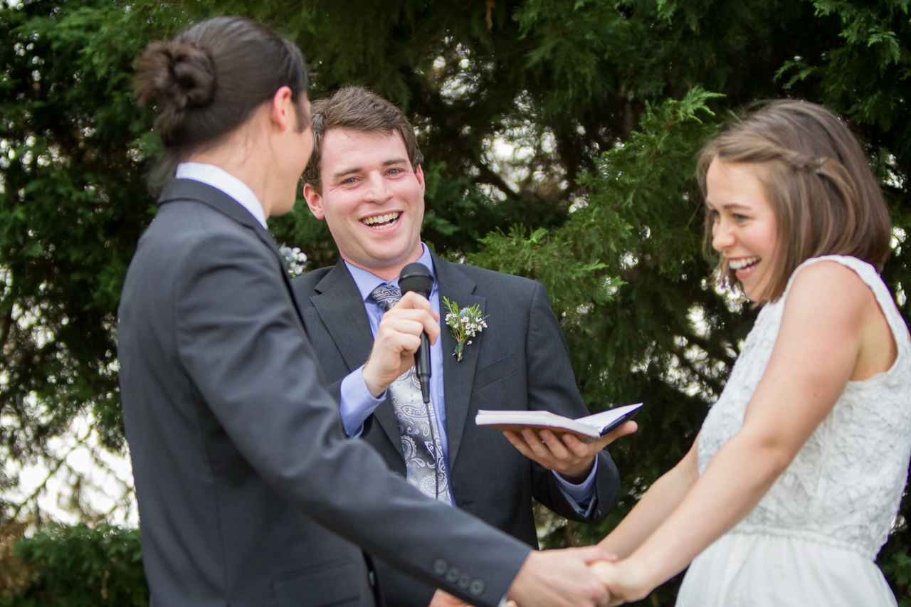 We chose to officiate our own wedding because both of us are atheists, but we wanted to make sure that some of our closest friends and family members could contribute to the ceremony.