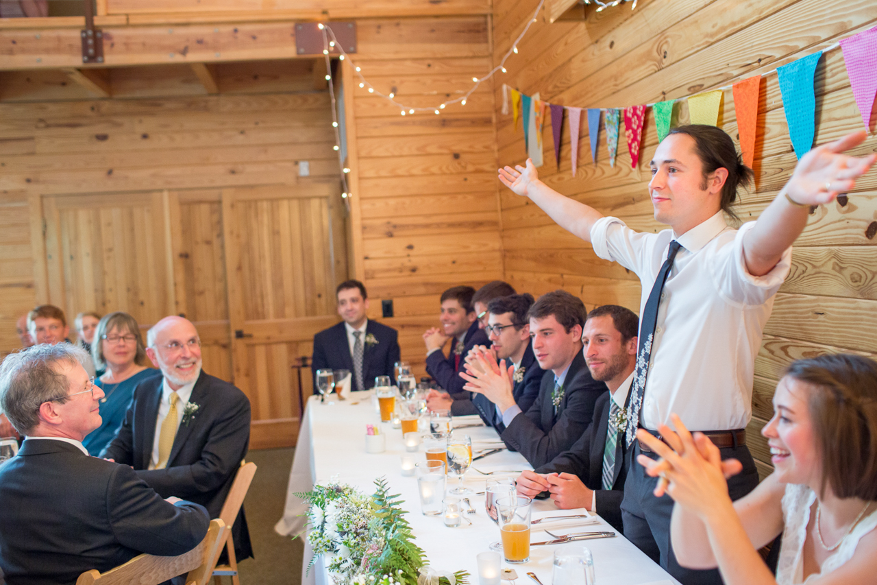 Sam: I would add that our officiant (who is also a best friend from college) wrote the most simple but touching speech for the ceremony. And, since it was 92 degrees and people were melting in their chairs, it was thankfully short! And also the fire alarm – we can’t forget that! We always joked that as long as no one died at our wedding we would rate it a success, and we saw it as a good omen that the alarms do indeed work! (And no one died, so, success!)