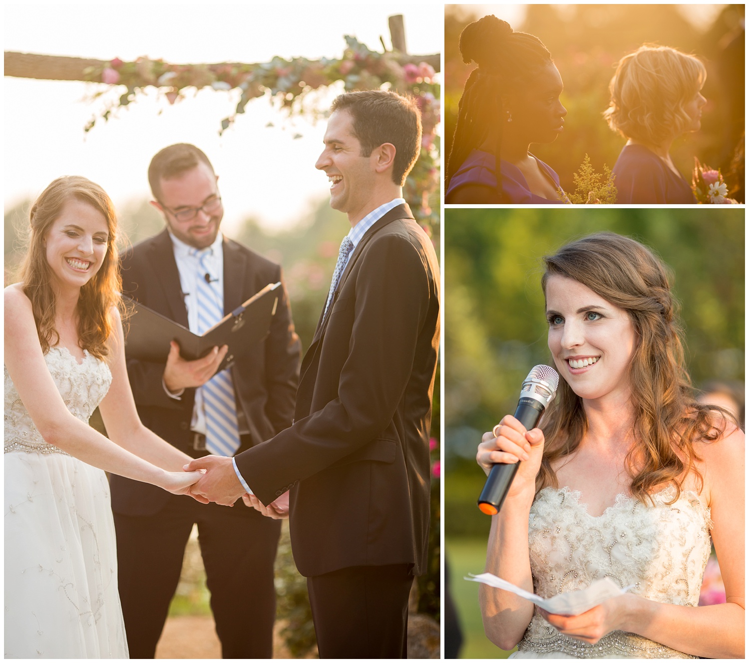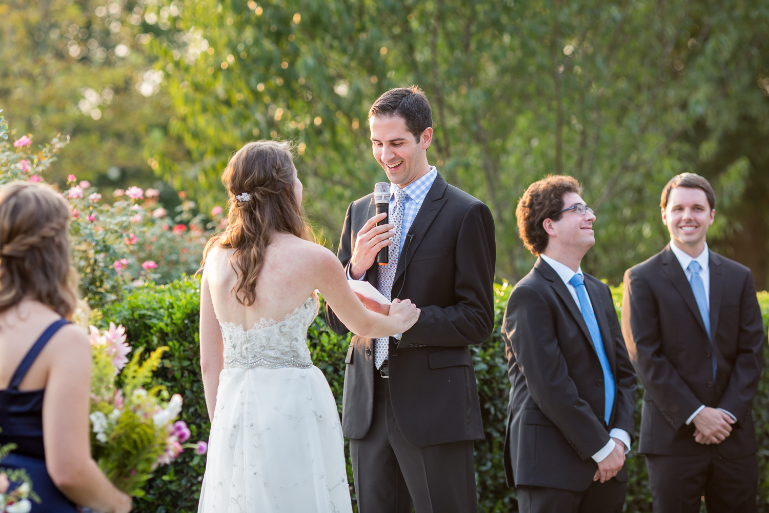 Get ready for the cheese : ) We both love the outdoors which was encapsulated by the scenery at the ceremony. For Matt, he thought Dana’s wit was displayed during her vows and her passion for having fun was demonstrated during the dancing at the reception. For Dana, she thought Matt’s intellectual nature and progressive values were evident in the discussion of the history of marriage in the ceremony. Matt is also humorous and fun which was woven into part of his vows and evident through his moves on the dance floor.