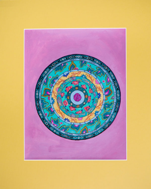 Your pink and yellow floral mandala comes gift-packaged in tissue paper and ribbon. I also bubble-wrap and tape the heck outta it so that it doesn’t break or scratch during shipping.
