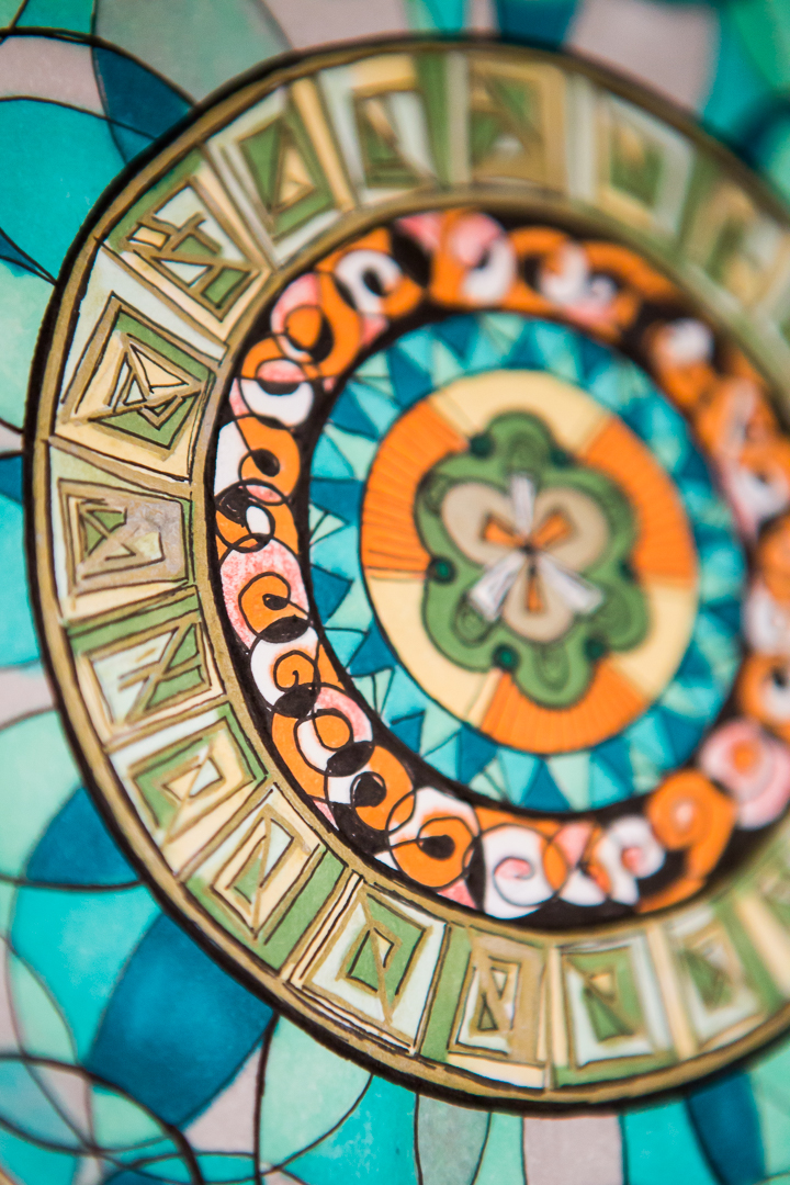 Your Green and Orange Geometric Mandala comes gift-packaged in tissue paper and ribbon. I also bubble-wrap and tape the heck outta it so that it doesn’t break or scratch during shipping.