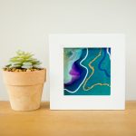 Your green and purple mini painting comes gift-packaged in tissue paper and ribbon. I also bubble-wrap and tape the heck outta it so that it doesn’t break or scratch during shipping.