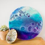 Your round canvas painting “Monterey Tidepool” comes gift-packaged in tissue paper and ribbon. I also bubble-wrap and tape the heck outta it so that it doesn’t break or scratch during shipping.