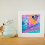 Your orange, blue, and purple mini painting comes gift-packaged in tissue paper and ribbon. I also bubble-wrap and tape the heck outta it so that it doesn’t break or scratch during shipping.