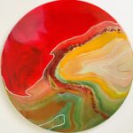 Your acrylic round painting “Orion Starbust” comes gift-packaged in tissue paper and ribbon. I also bubble-wrap and tape the heck outta it so that it doesn’t break or scratch during shipping.
