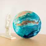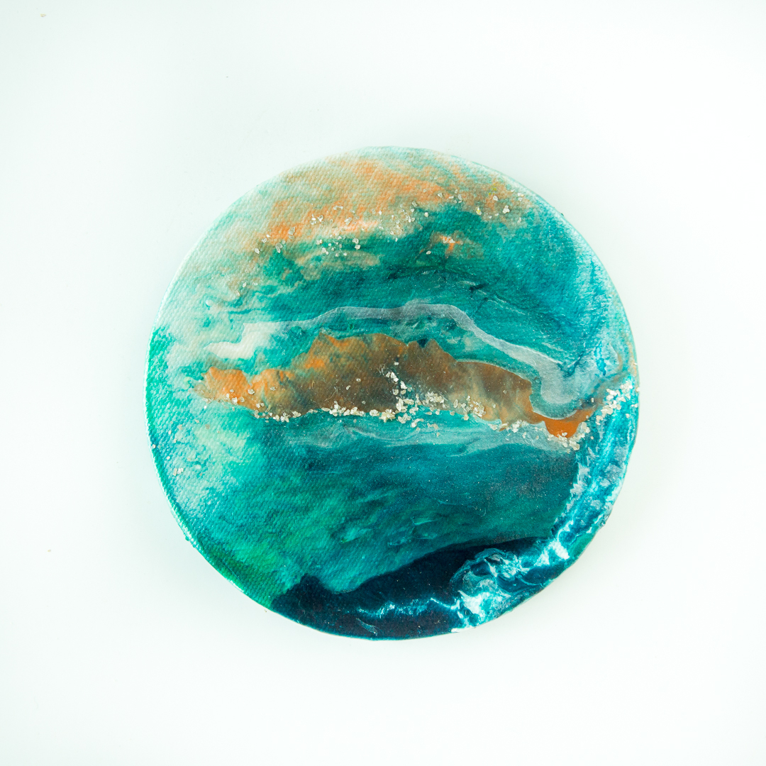 Your round turquoise painting “Santa Cruz” comes gift-packaged in tissue paper and ribbon. I also bubble-wrap and tape the heck outta it so that it doesn’t break or scratch during shipping.