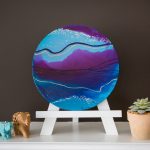 Your round abstract painting “Ushuaia Sunset” comes gift-packaged in tissue paper and ribbon. I also bubble-wrap and tape the heck outta it so that it doesn’t break or scratch during shipping.