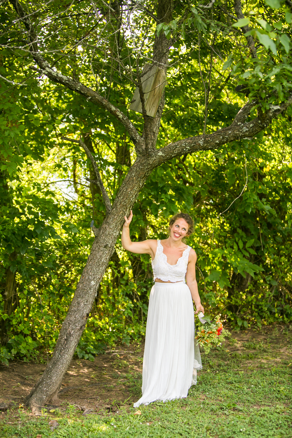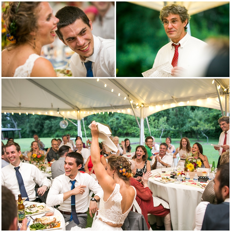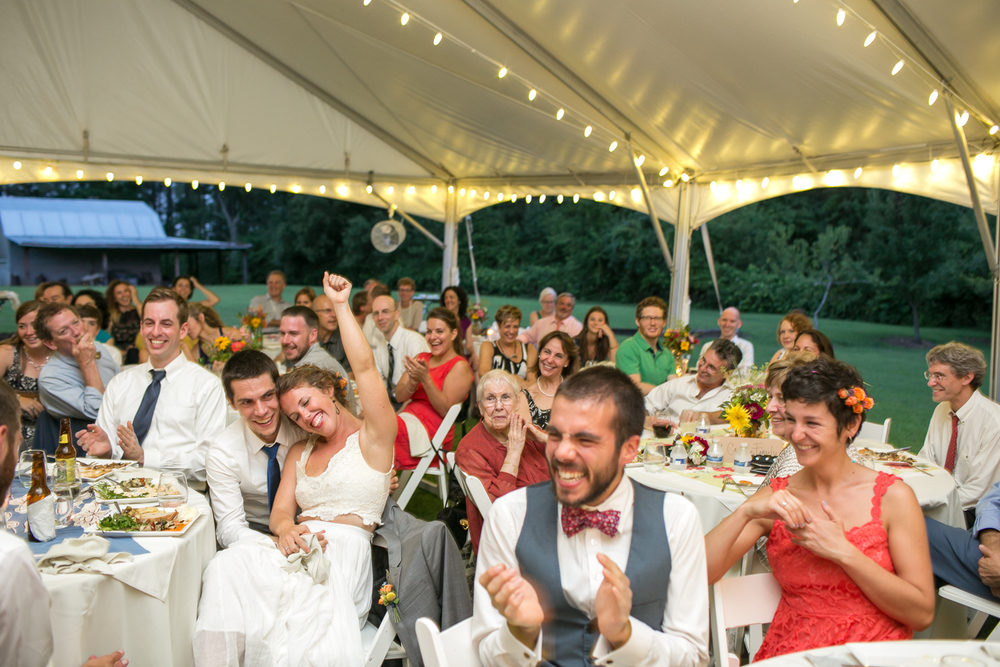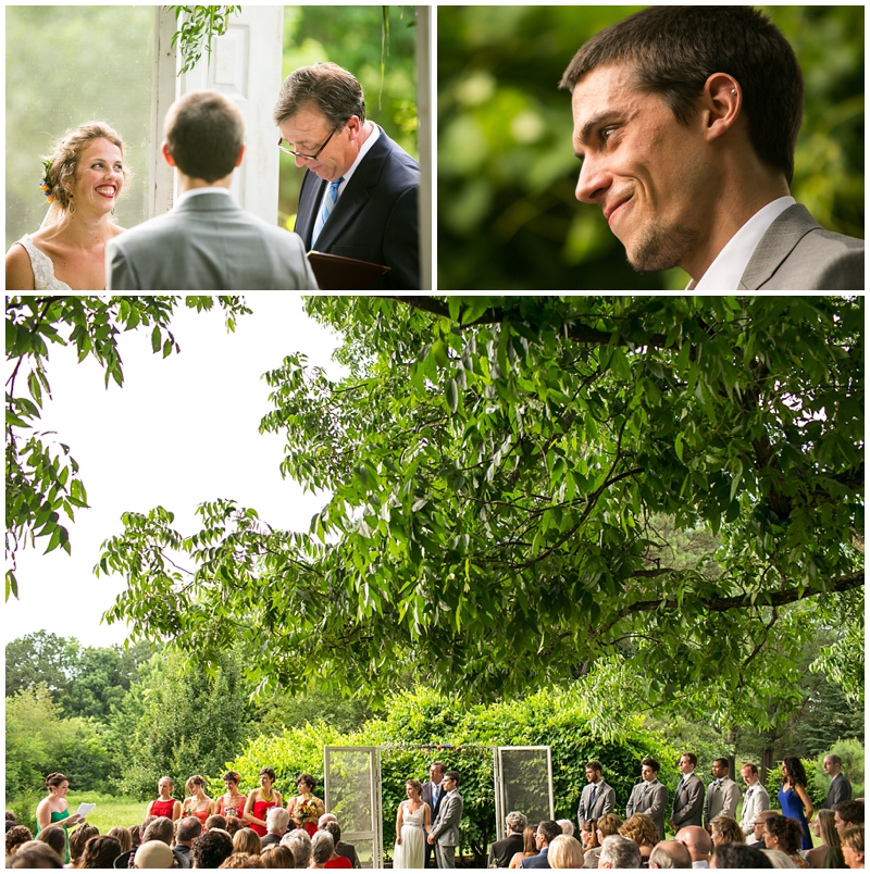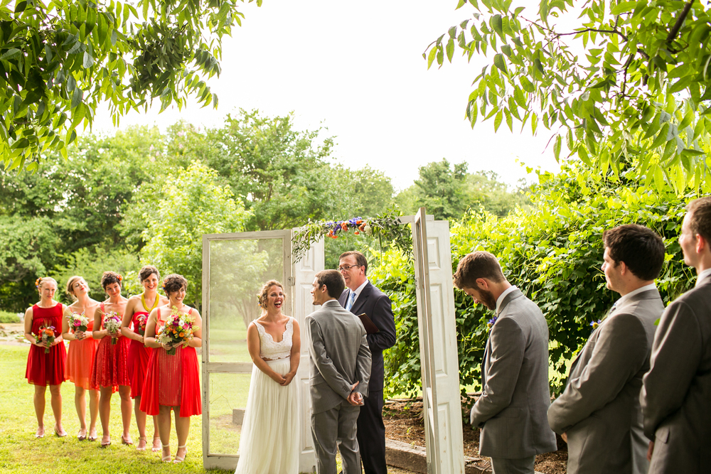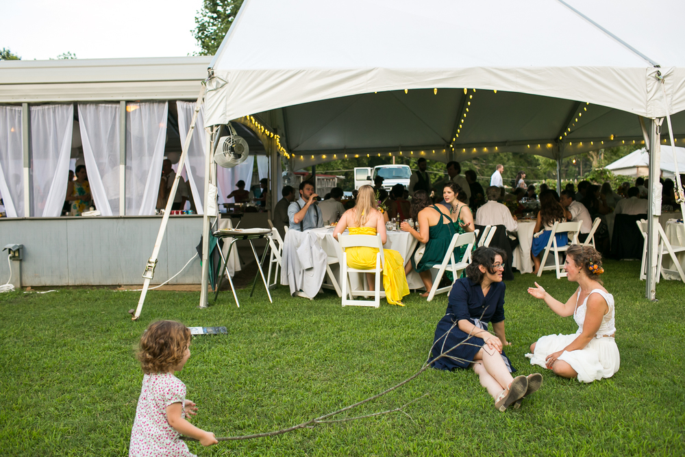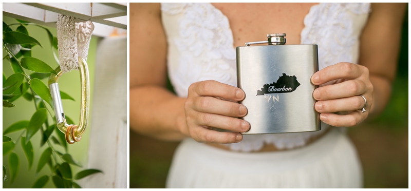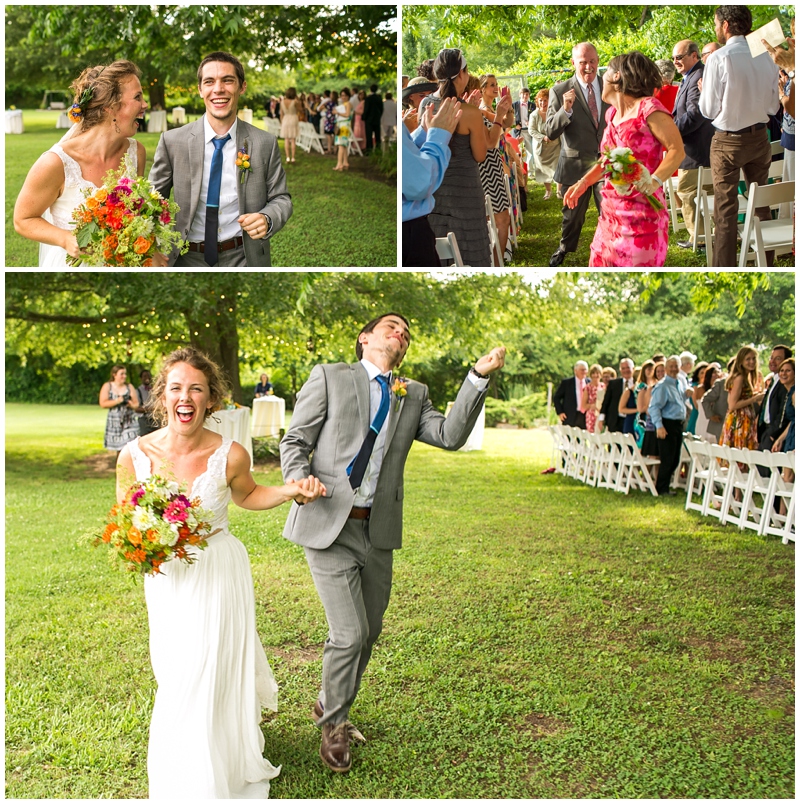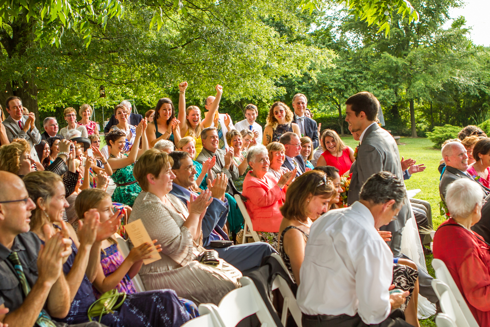 The outdoors means a lot to us and it was never really even a consideration to get married inside.  We were worried a bit about rain so we rented a tent to have as back-up ceremony space and talked to our caterer about a rain plan.  We also followed an old tradition and buried a bottle of bourbon upside down on a beautiful day a few weeks before our wedding– it worked!!