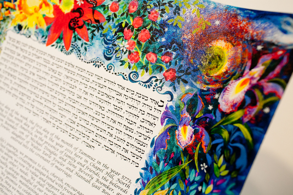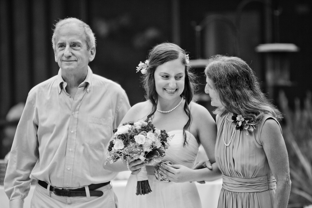 Both the ceremony and reception took place at Sarah’s grandmother’s house, nestled cozily in the woods.  Sarah grew up just one house over, and I loved that the location of her wedding occurred in such a familiar and memory-laden place for her.  In an age of destination weddings, it seems a rarity to get married in the home you grew up in (let alone have your family remain in the same location for 30+ years!)  Instead of signing their ketubah in a stale hotel conference room, Sarah and Doug sealed their promises to each other in Sarah’s grandmother’s home office, which was filled with sweet mementos and photographs- Sarah as a child, Sarah’s graduation picture, and other knickknacks that had been collected over the years- each with its own story.