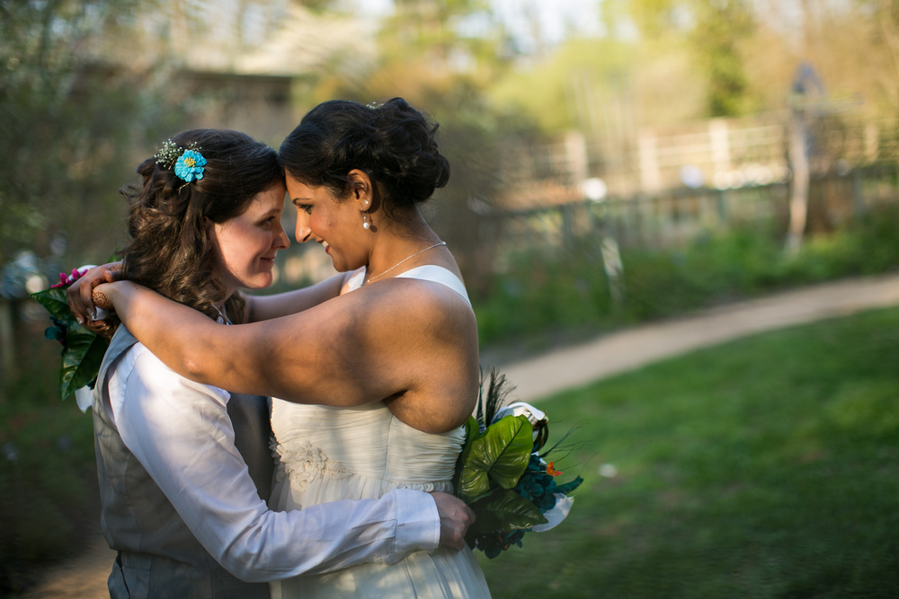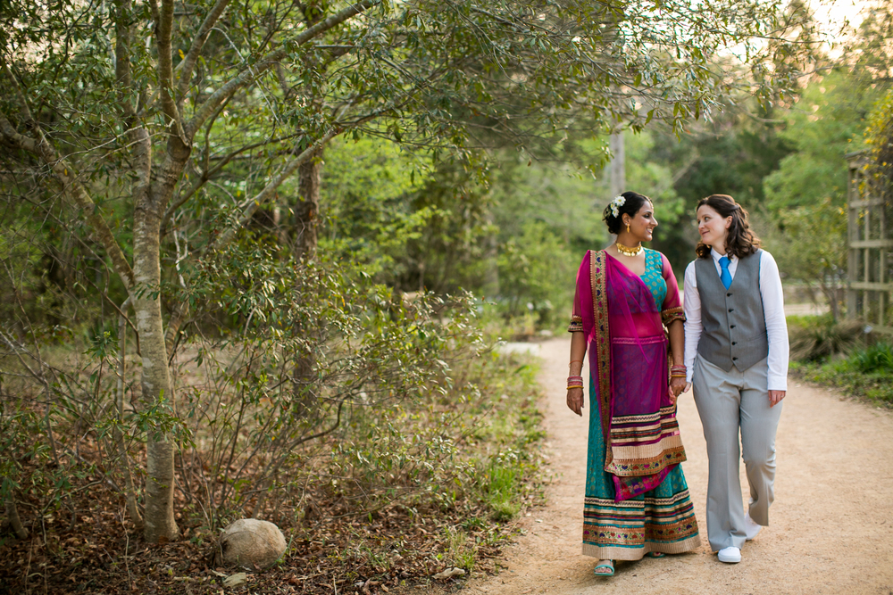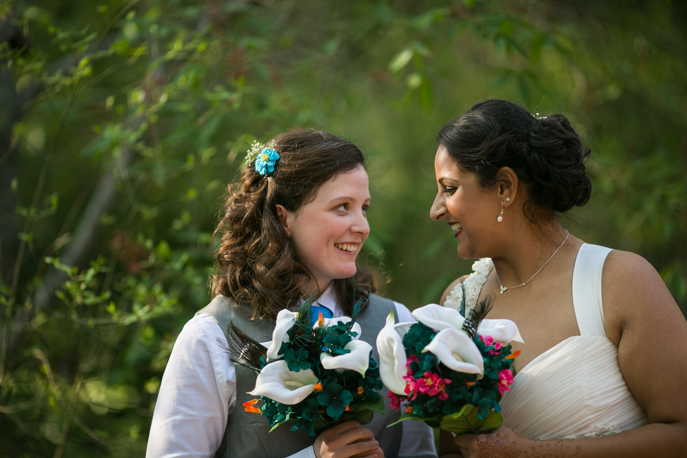 When Bejal explained her LGBTQ wedding vision as “peacock-themed with Hindu influences,” I was hooked! I always love when couples create a wedding experience that is unique to their story, and this Indian-fusion wedding in a relaxed garden setting was definitely true to Bejal and Brittany.