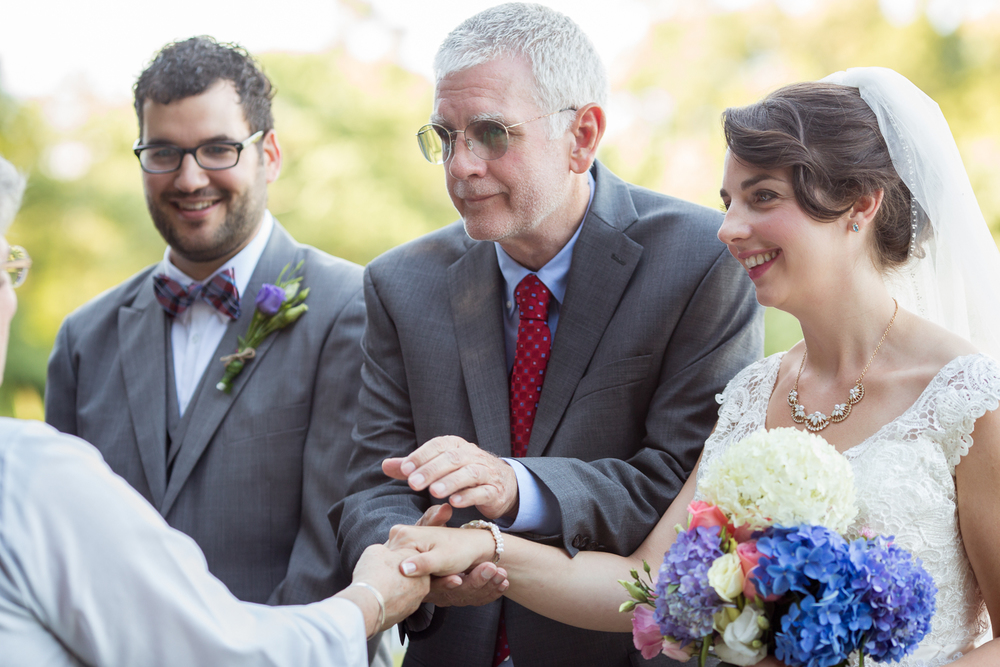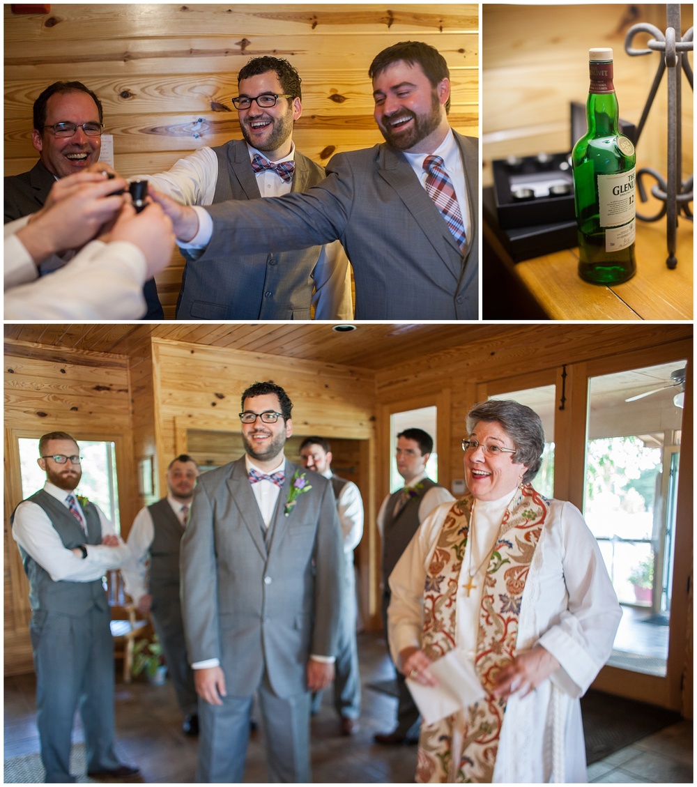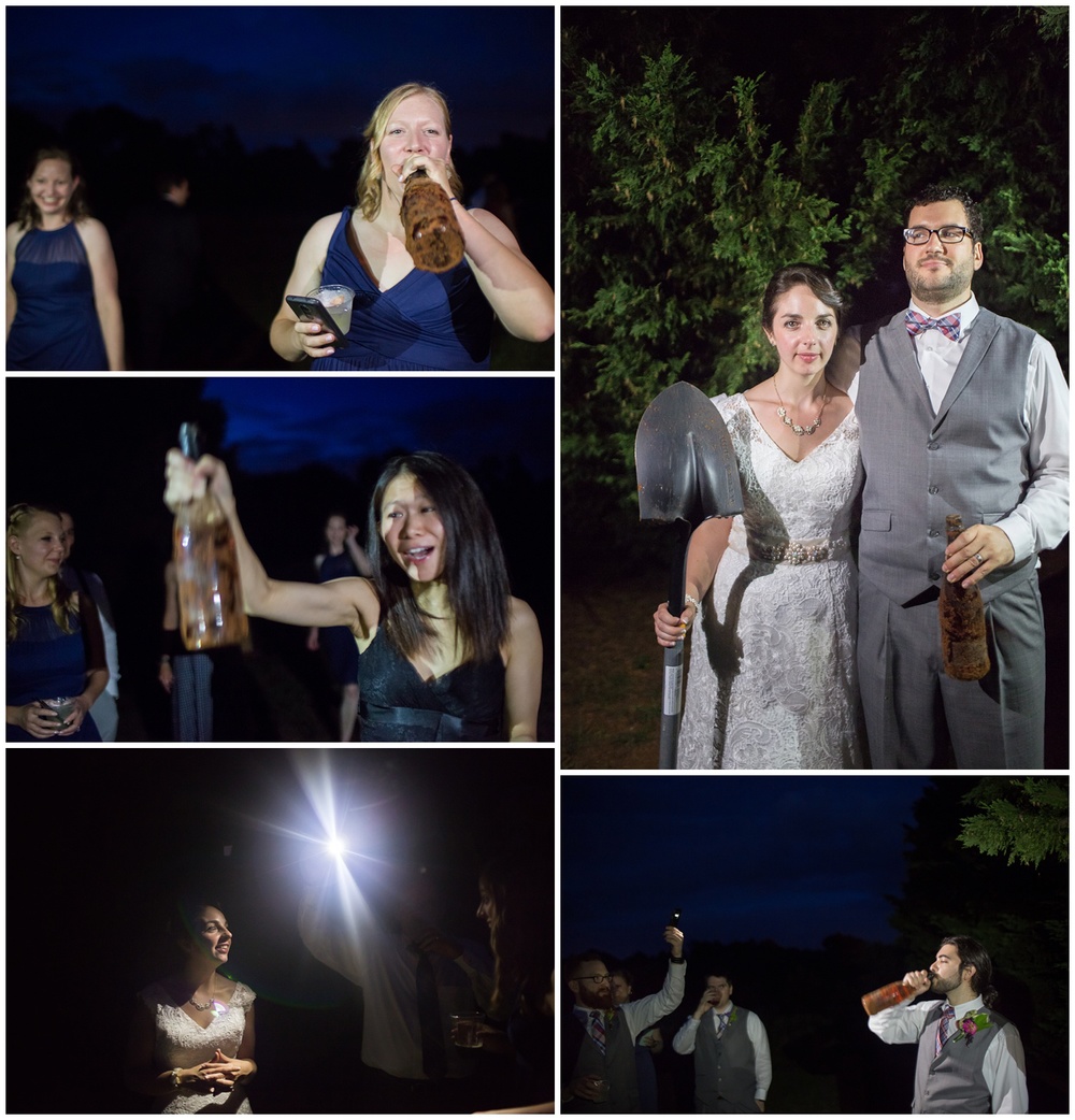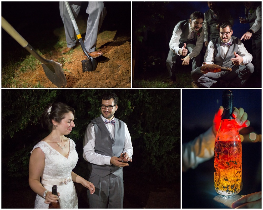 We should also give a shout out to our awesome bottle of bourbon that kept the rain away on our special day. Kevin’s dad tipped us off to this southern tradition of burying a bottle of bourbon exactly one month before the wedding, at the exact place you are getting married, to make sure it doesn’t rain. So on June 4th at 6:30 pm, we drove out to the Rigmor house and buried a quality bottle of bourbon upside down where we planned to have the ceremony. It worked! Even though it poured the day before the wedding and all around the Rigmor house the day of, we didn’t get a drop of rain, and the weather was beautiful.