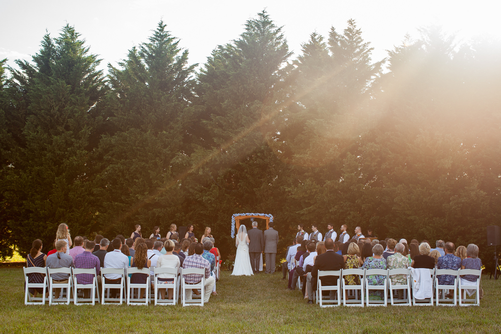 Our primary goal for the wedding was to host a fun event that our guests would enjoy. We also wanted great food and music, and to represent our respective homes, North Carolina and West Virginia. It was important to us to have a wedding that felt in line with our values, especially the ceremony. We wanted to say vows that we felt good about saying and include traditions we were on board with.