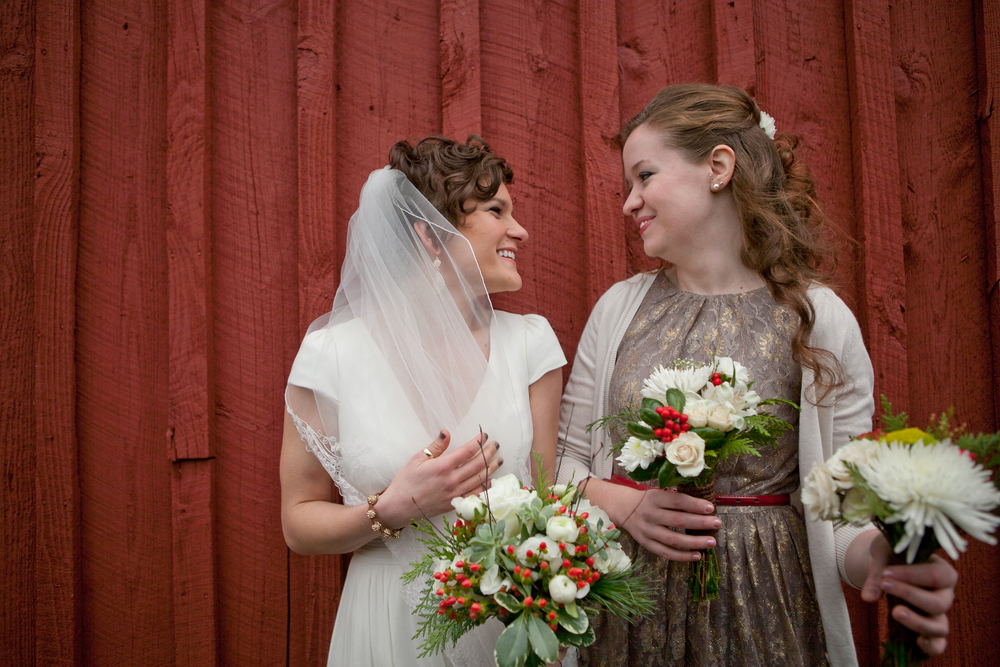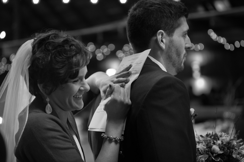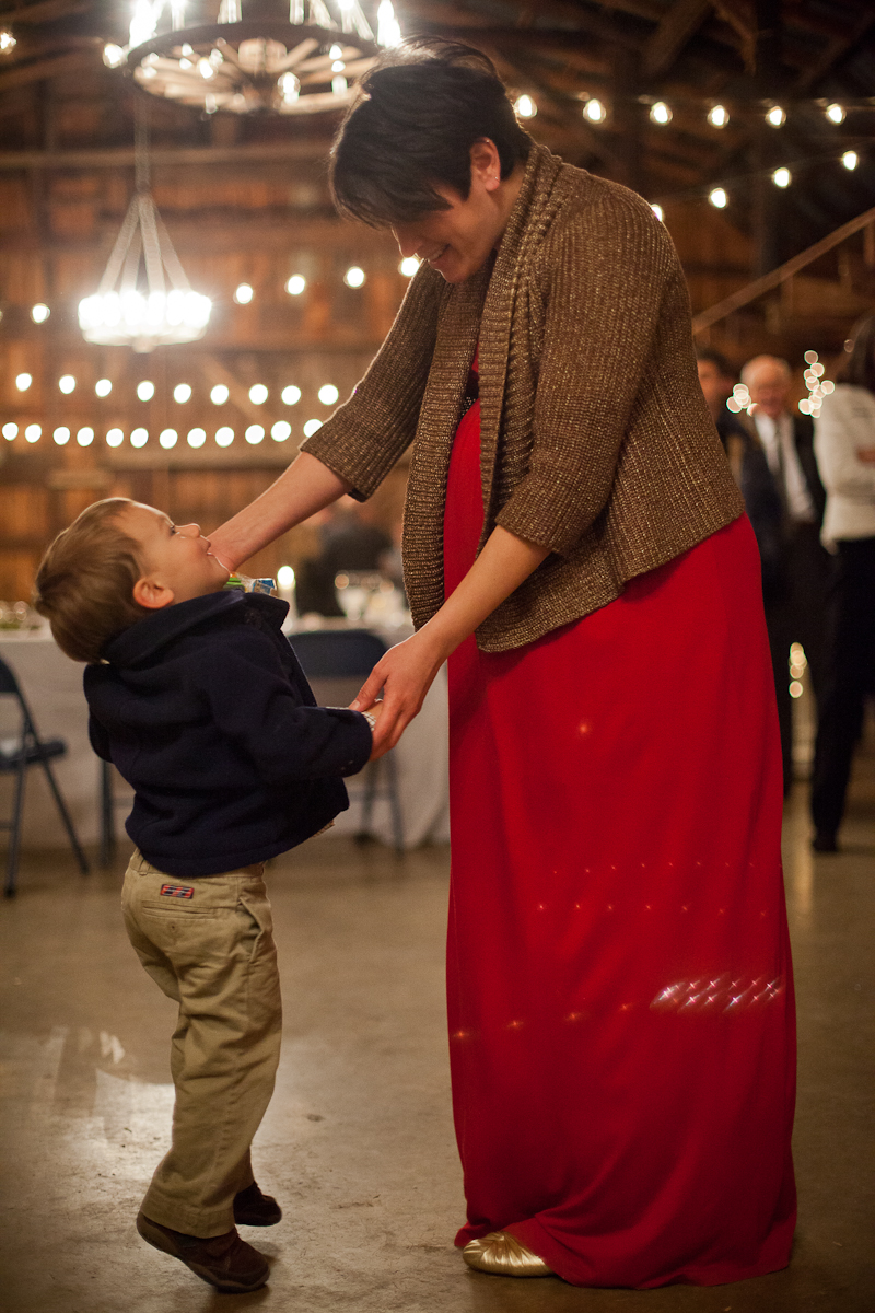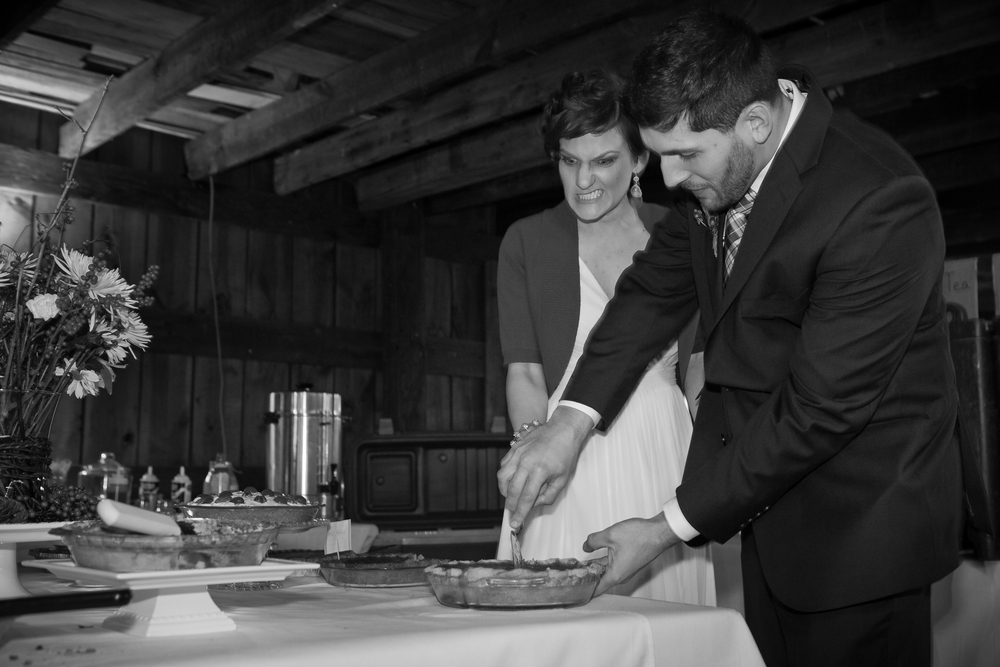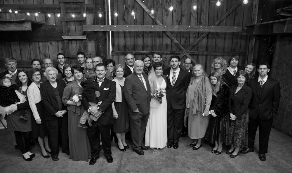 Lisette and Steven’s barn wedding turned out to be really beautiful.  Family and friends helped out with all aspects of the set-up, stringing Christmas lights around the perimeter of the inside and baking pies for their potluck-style dessert bar.  In an age when the wedding industry tries to convince couples to drop ridiculous amounts of money on mere table settings, it was really refreshing to experience an intimate, beautiful DIY wedding.
