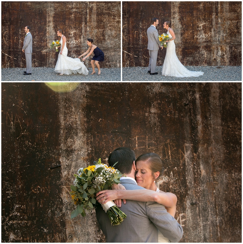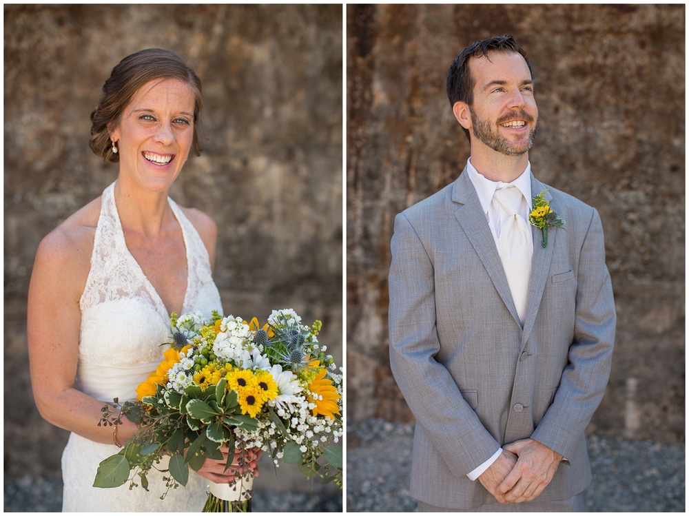 The engagement session was a great decision. Neither of us had spent a lot of time in front of a camera before our wedding, so it was great to have that experience. The locale was unique and fun – thank you Courtney for hooking us up with a farm in Hillsborough! It’s impossible to be nervous when you have a cat sitting on your feet and donkeys looking on! There were a lot of great photos from that day, but one of our favorites has the two of us leaning our foreheads together – the light is really beautiful and it’s a sweet moment.