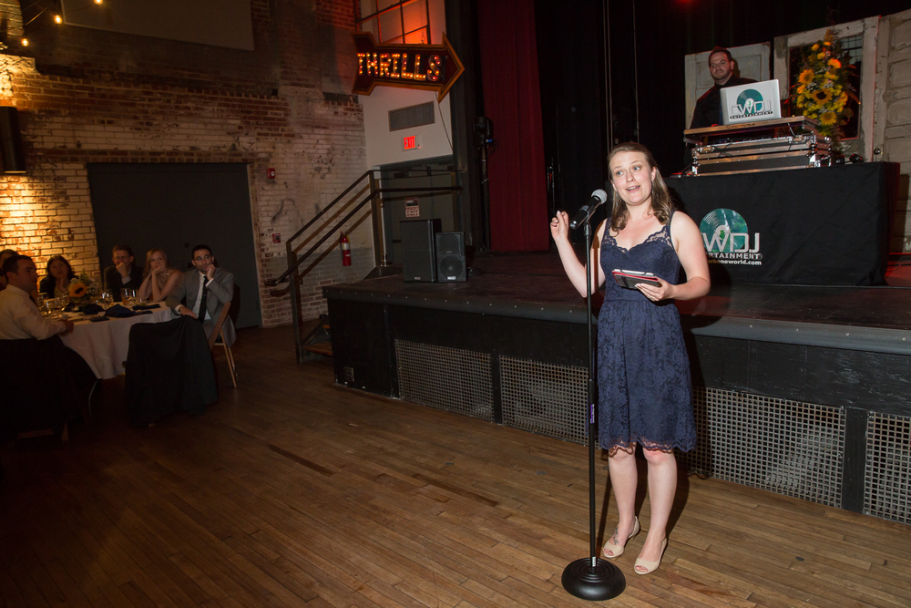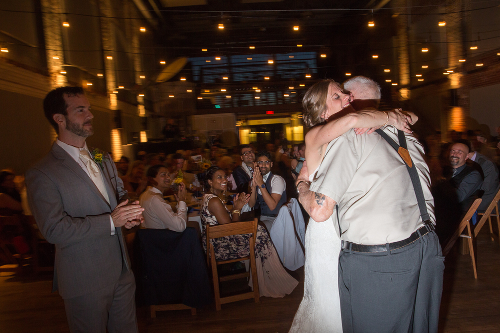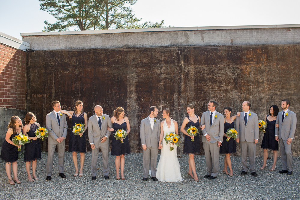 We wanted the ceremony and reception to reflect our values and vision for what we want the world to look like: a just, equitable, welcoming and joyful place where community is strong and everyone can be fully present and fully themselves—with fabulous music, let-loose dancing, and delicious food and drinks of course! We know that having a wedding and a state-recognized marriage is a privilege, and one that couples like us have had longer than others, and it was important for us to acknowledge that, even if in a small way with some text on the bulletin. The ceremony used gender-neutral language, and we didn’t gender our wedding party or their clothes—Will had a posse, I had a posse, and they wore clothes from the same color palette. We spent a lot of time picking out the readings and music for the ceremony and determining how our friends and family would be involved in ways they’d enjoy. We both grew up in the Presbyterian church and it was important in shaping our values and sense of community, so it was special to have the ceremony in the church in which Allison was raised. We’re also both from NC. The Haw River Ballroom reflected both different parts of North Carolina we identify with—the textile mill, the river, the country roads, and the music, arts, microbrew, and proximity to Chapel Hill where we met.