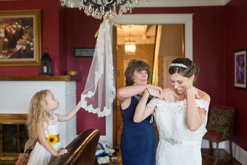 Kasha – That’s a tough one! Like I said, most of the details were very personal – my mom made my veil and we double-teamed the flower girl dresses, my brother made all my jewelry and Drew’s wedding band, Drew’s mom made his tie and sneakily attached our messages to each other to it and my dress, one of Drew’s groomsmen made our cake, we had a whole team the day before and day of arranging flowers, decorating the archway, and setting everything up ….so many things. As far as moments…our first look was beautiful and probably what I was looking forward to most. It was so sweet and one of the only moments we had just to ourselves the whole day. My father/daughter dance was ridiculously fun to plan and we totally killed it. Also, just getting to have so many people we love in one place dancing around and partying together was really amazing.