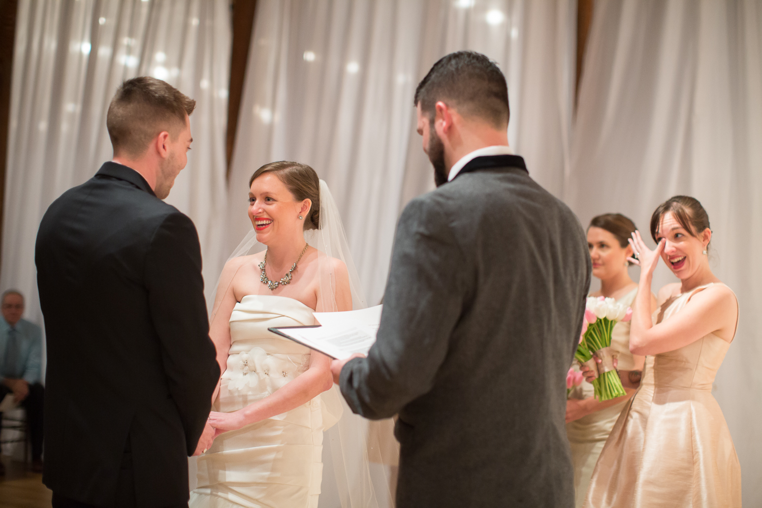 We chose to officiate our own wedding because both of us are atheists, but we wanted to make sure that some of our closest friends and family members could contribute to the ceremony.