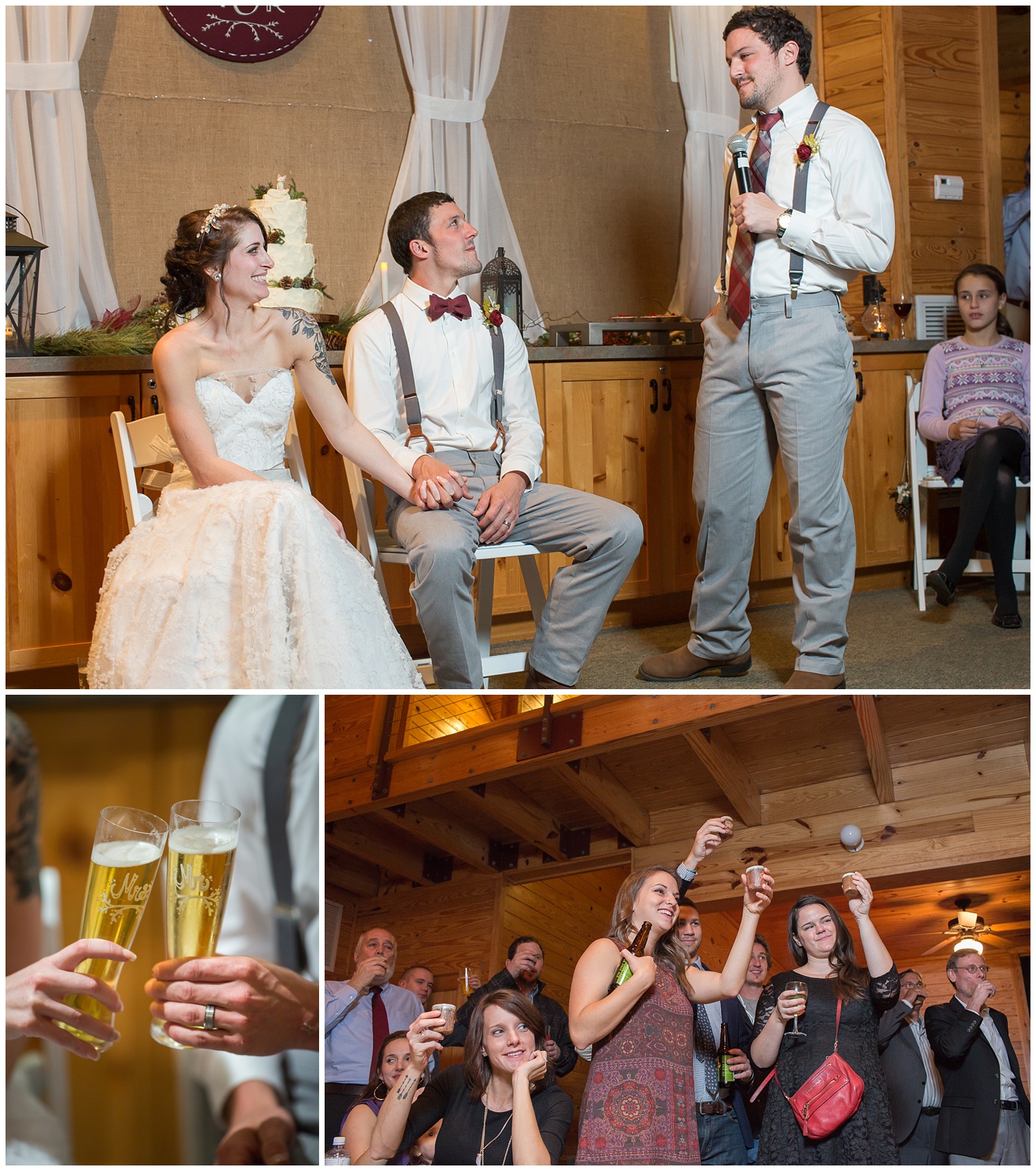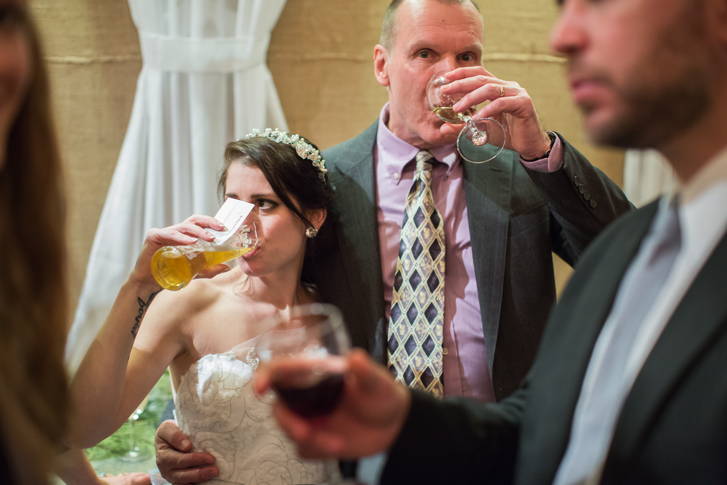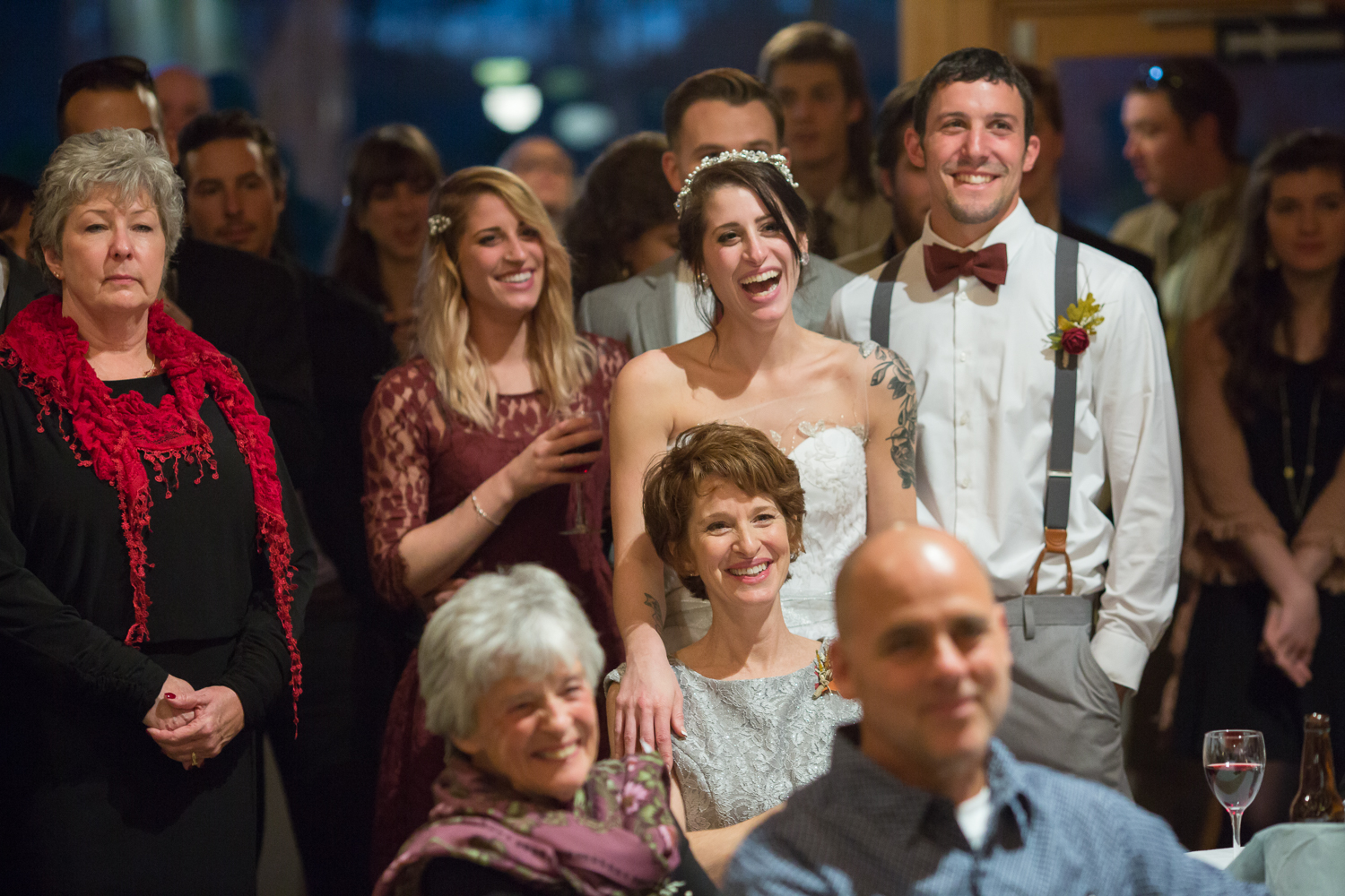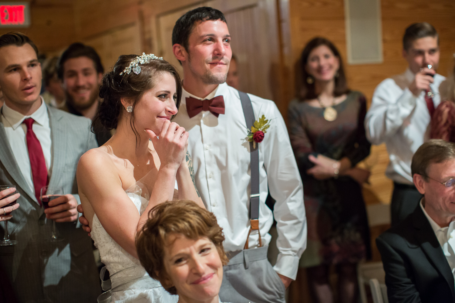 It was chilly when Sarah and Erik read their vows to each other underneath the wooden trellis, but everyone was warmed by this couple’s deep love for one another.  It made me wonder why more couples don’t get married in the winter, since the environment was so intimate and cozy!  Perfect for a wedding.